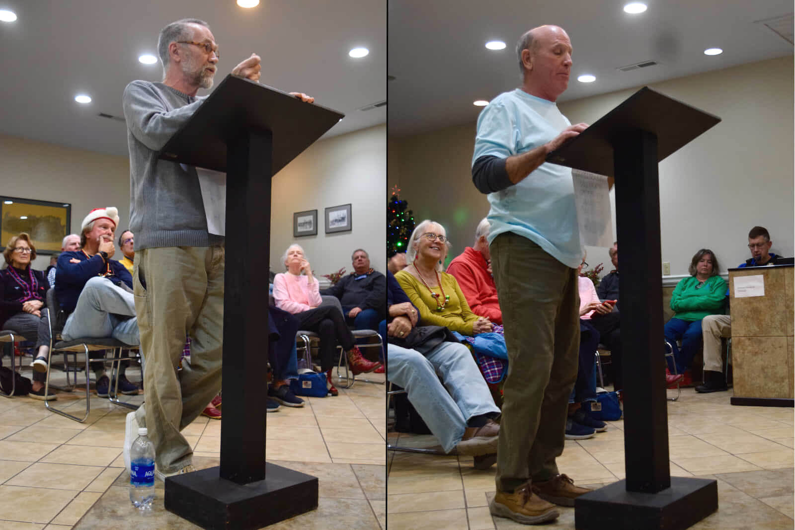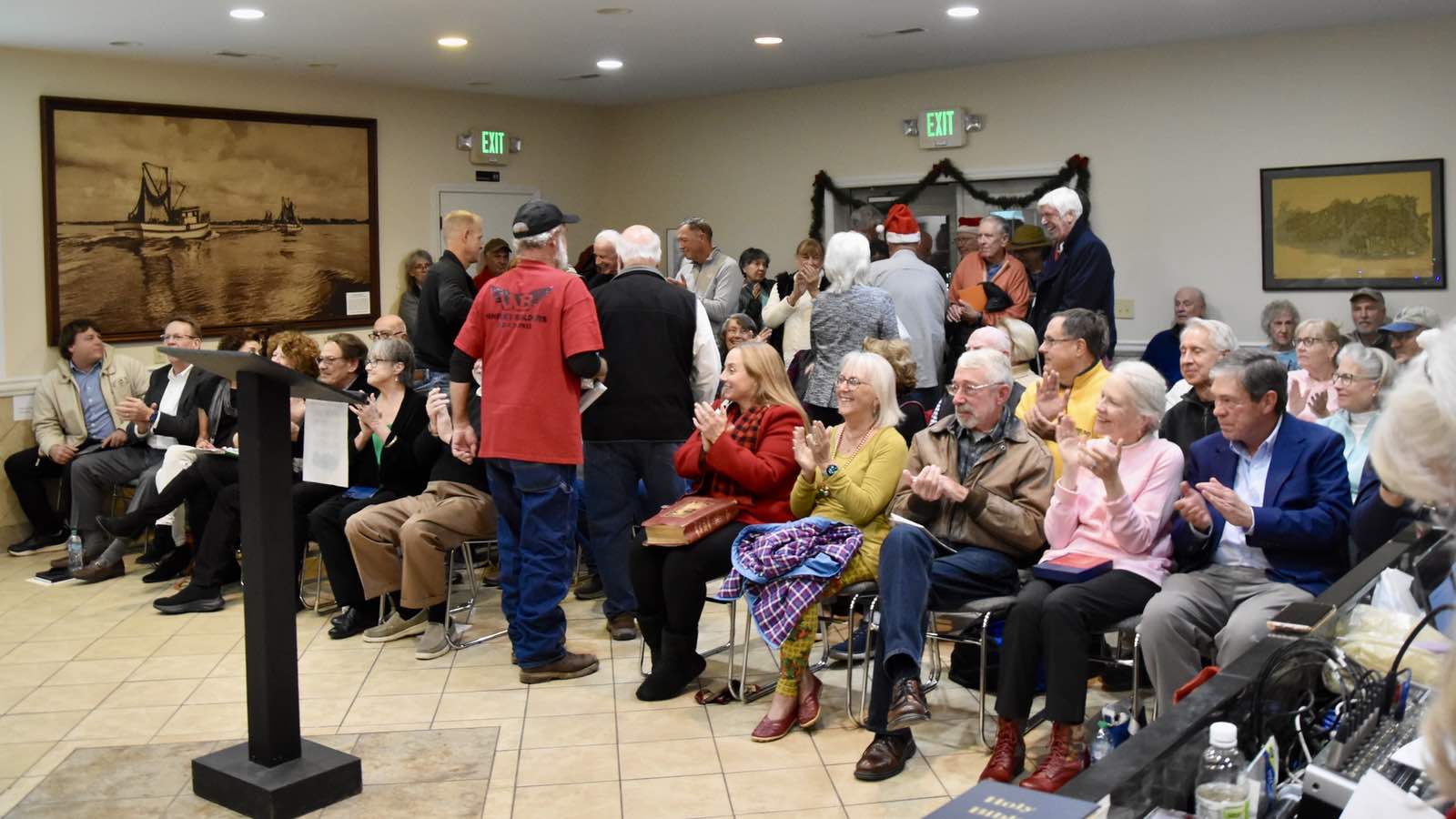 Commissioner Comments: “Ears are Open”I want to thank everyone who came out tonight,” said Commissioner Jordan. The Town has demonstrated its deep concern about the government here in Oriental.” He continued,” I think I can speak for everyone else up here. We will do our level best and keep our ears open.”Mayor Sally Thanks the Woman’s Club of Oriental for the Christmas Tree at Town Hall. “Thank you, Oriental Woman’s Club, for giving us something pretty to look at.”