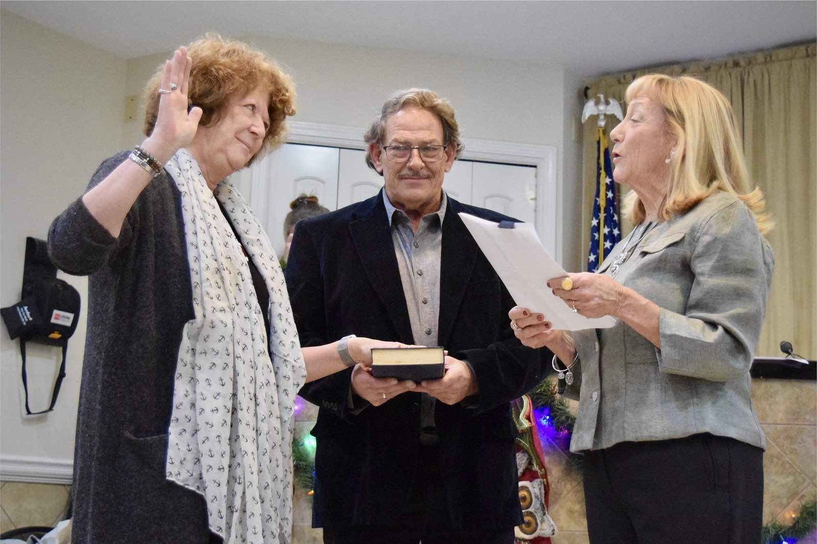 Incoming Board SeatedMayor Sally Belangia swore in the Commissioners-elect. Family members joined the new Commissioners.