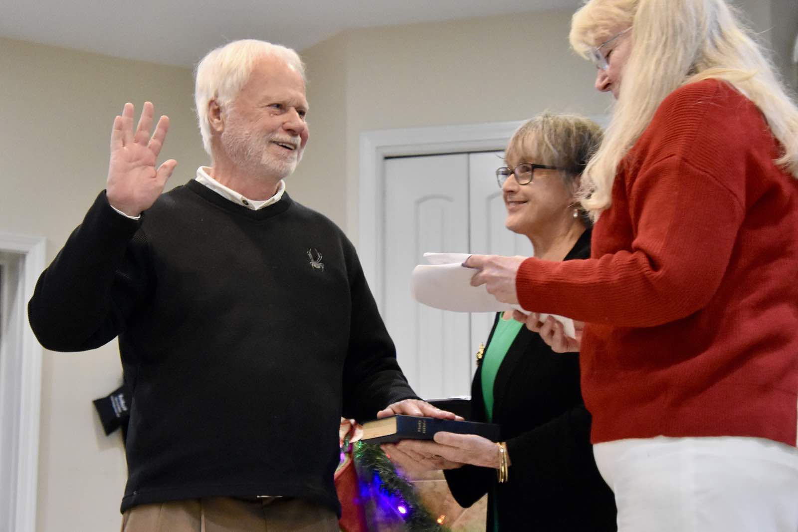 A crowd packed town hall to witness the transition to the incoming Town Board.Outgoing Commissioners HonoredMayor Belangia recognized each of the outgoing Commissioners with a plaque commemorating their service to the Town of Oriental.As their last order of business, Commissioner Winfrey adjourned the final meeting of the 2023-2025 Oriental Board of Commissioners.