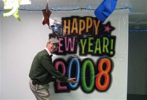 Jeff Aydelette shows New Year’s spirit at the Wits End, which was open to the public between the 8pm and 11:30pm dragon runs.