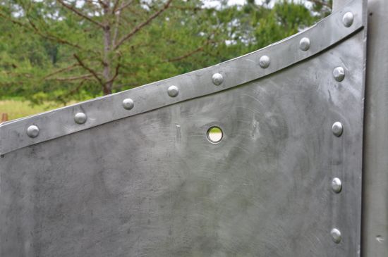 Detail of the rivets. (The hole was there in the aluminum before it became the sculpture.)Plus,” he adds, “it’s freakin’ strong.”