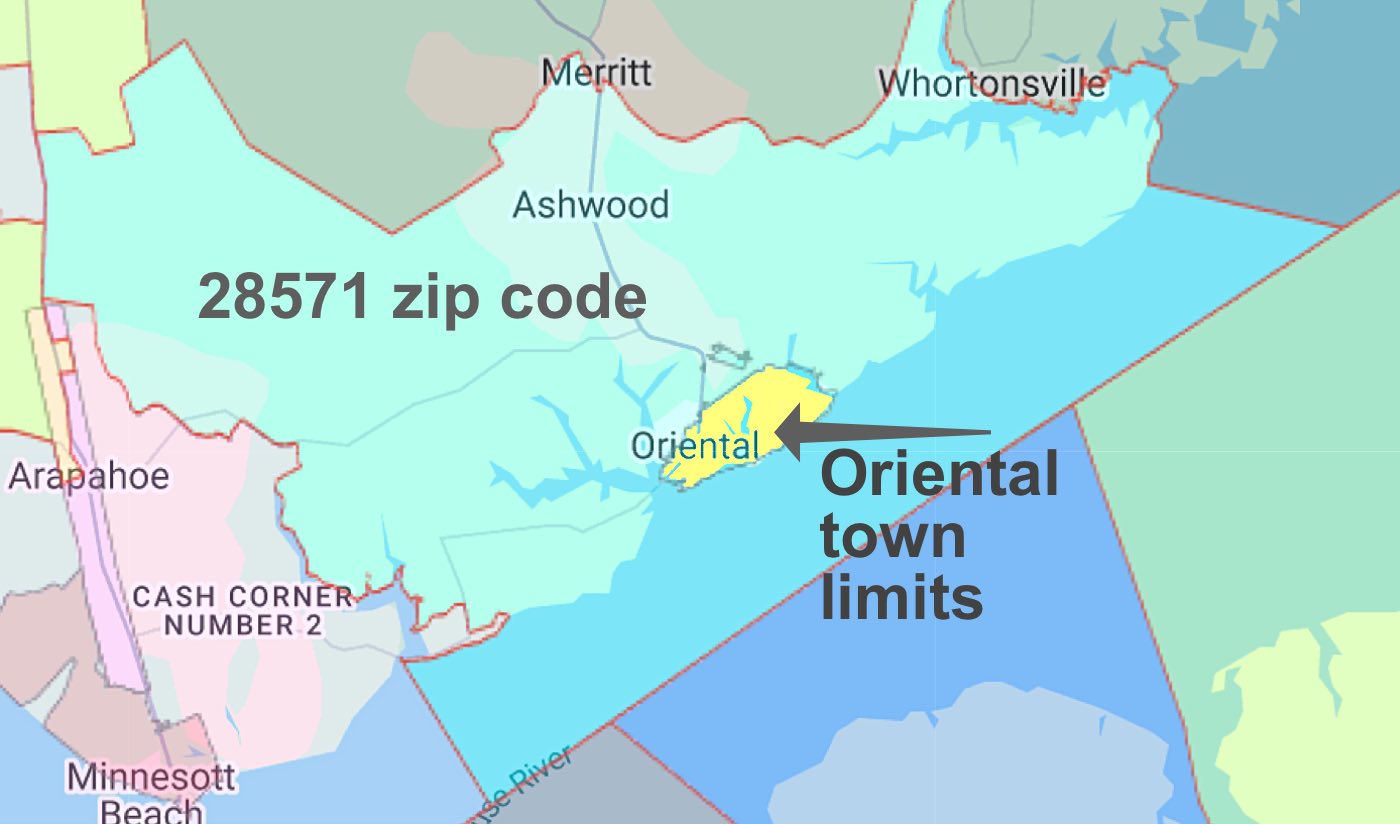 Officer Bill’s jurisdiction is the town of Oriental plus one mile. The Pamlico County Sheriff’s Office has the rest of 28571.Butch Rasmussen