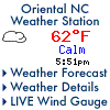 The gauge in Oriental cost $20,000, says Herlong, and is one of 9 new gauges installed in Eastern NC with FEMA grant money. Belhaven got one, too, and this round of installations brings to a dozen and a half the number of these gauges on the coast and Eastern rivers. Another two dozen have been operating for years in the more mountainous – and flash flood-prone – regions of western NC.