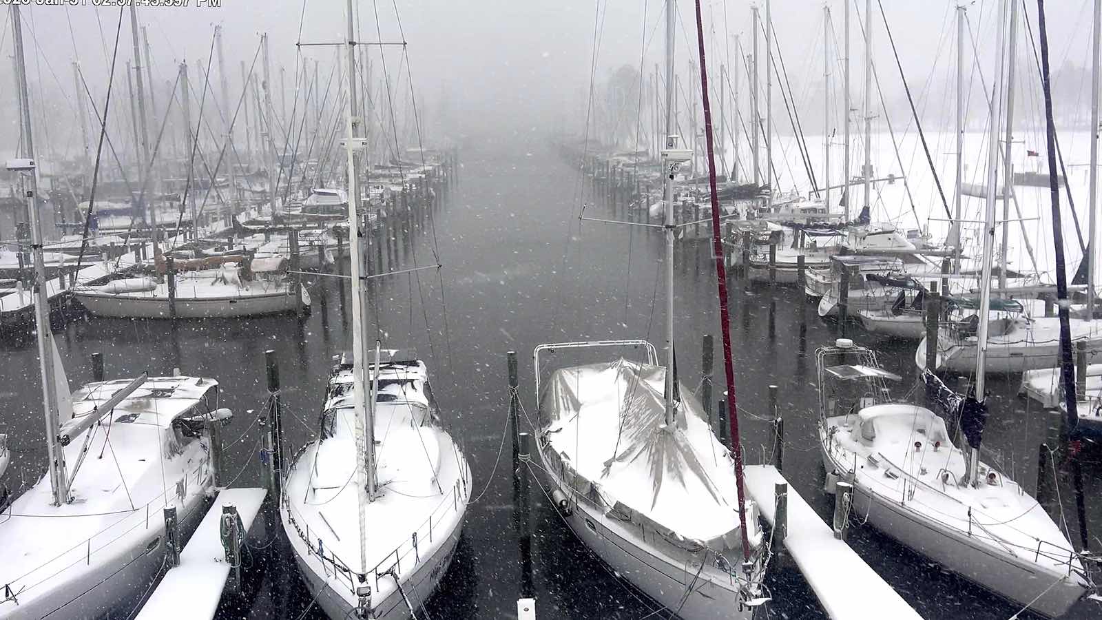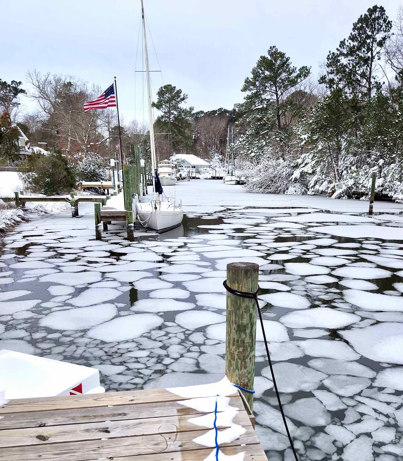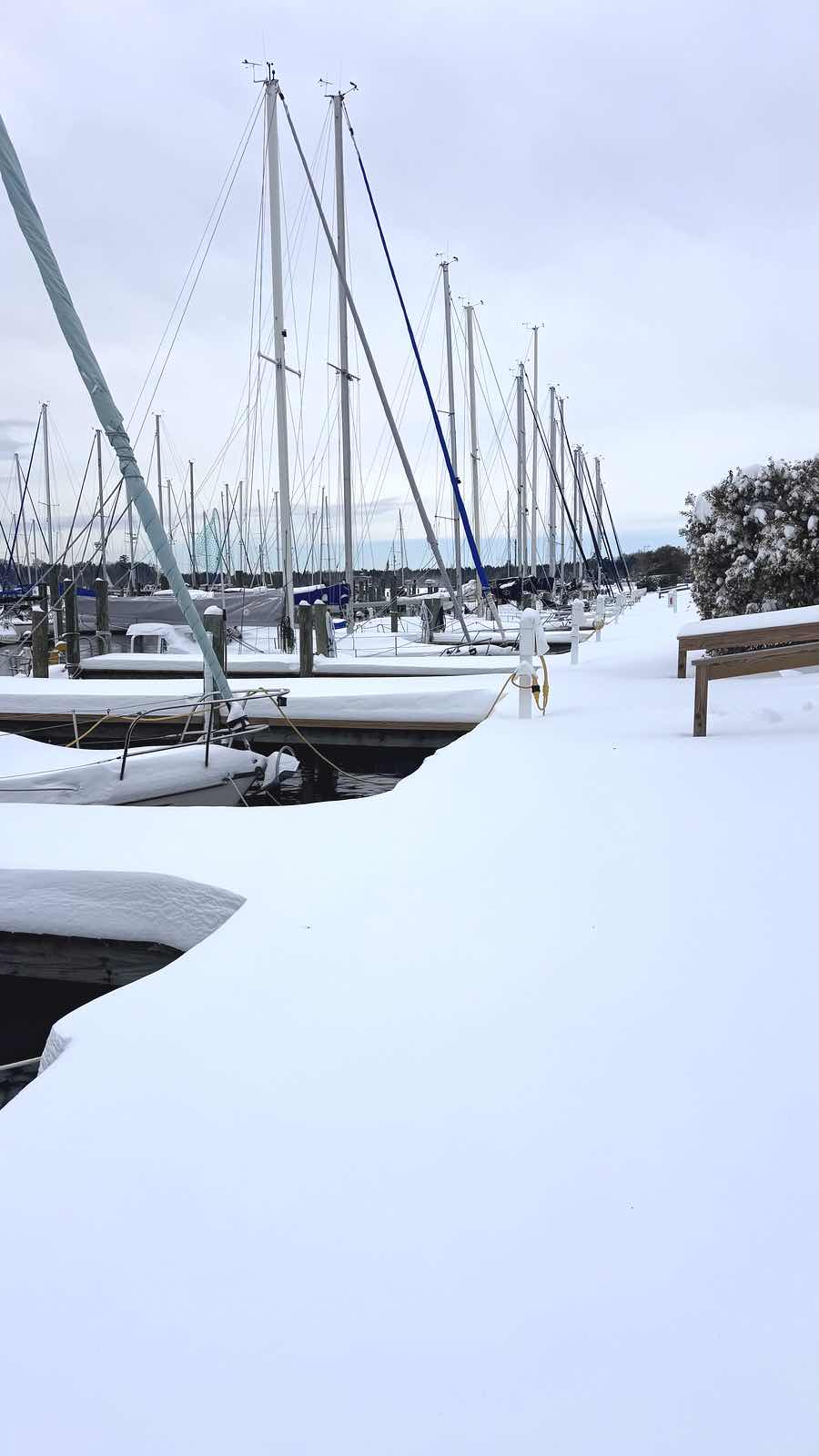 Pecan Grove Marina Saturday, mid storm. (Pecan Grove photo)Sunday saw over a foot of snow on the ground. Readers from in and around Oriental sent in their photos.