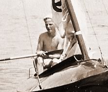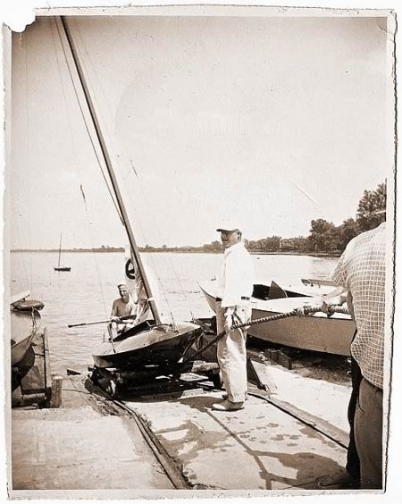 Bob, age 14, is in the cockpit of the 11’ Moth sailing dinghy. That’s Bob’s Dad (Gordon Andrews) in the white shirt. Bob today very much looks like his Dad – or in the words of Oriental Tree Board member Ken King – “the acorn didn’t fall far from the tree”.The dinghy launched from the railway, Bob mans a paddle as he gets ready for the days sailing lessons.As a result of sailing lessons at an early age Bob went on to enjoying the sport through much of his life. Bob says he owned several sailboats, but his favorite was a Compac 19.Do you know a young would-be sailor? Click here to learn about Oriental’s Youth Sailing Program.