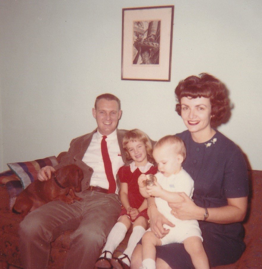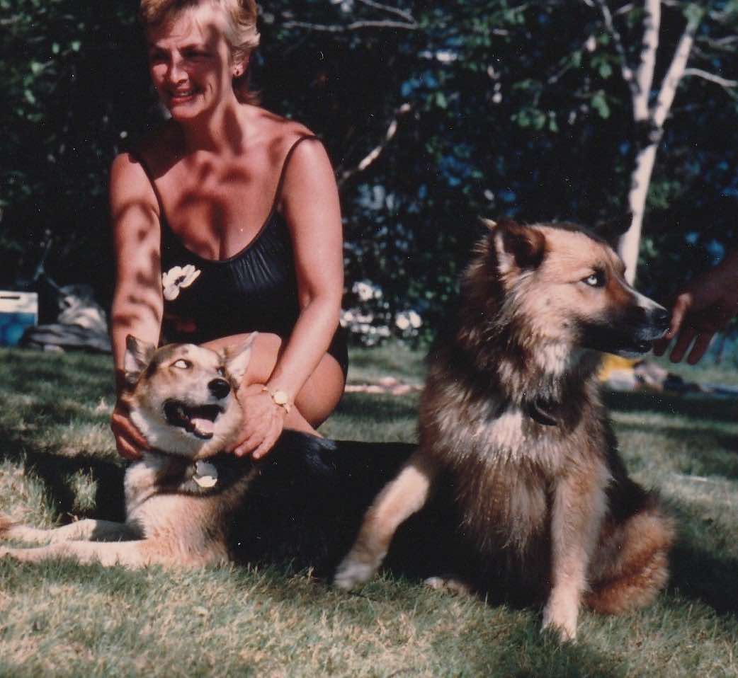 Sharon and Geoffrey, with young children Tara and John, and dachshund Rasputin 1964.Life revolved around Tara and John’s school band concerts, Tara’s flute lessons, John’s hockey games, ski patrol and skiing at Maple Valley and sailing on Lake Whitingham, and everyone loved going to the chalet.When Sharon retired from teaching in 1982, she moved full-time to South Newfane. Sharon doted on her animals – strictly dogs at first. Rasputin and Brewmeister the dachshunds in the 60’s, Fredryka the basset hound (and for a short time, her puppies) in the 70’s, Paddington Bear the husky mix in the 80’s. The Vermont days added cats to the mix – Emilee and Sir Agravaine.