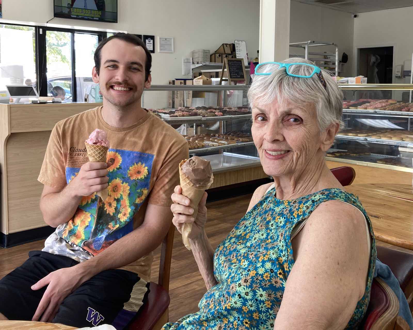 Sharon getting ice cream with her youngest grandson Reese, 2023.Memorial donations to Pamlico Animal Welfare Society (PAWS) are welcomed at PO Box 888, Oriental, NC 28571.