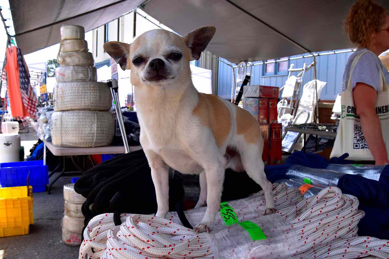 A dog welcome visitors to check out a table piled with line, gauges available at the Nautical Flea Market, and a willingness to get rid of it all.This year saw the addition of a music and beer garden tent.