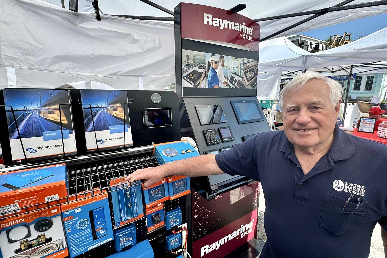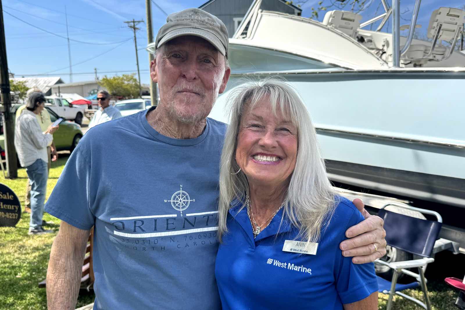 Duncan and Maggie Herring of Herring Marine.Craft and boat vendors set up on the lawn at the Oriental Marina & Inn, selling everything from decor to boat building kits. The Nautical Flea market offers experienced boat bits for a discount, along with nautical odds and ends.