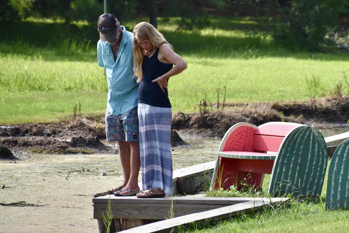 John Bond sets out slices of watermelon.A couple of hungry, happy kids.Fay Bond and her husband started the Watermelon tradition 51 years ago.Residents and visitors talk and eat under tents on the lawn.Terry Halpern demonstrating one technique for watermelon consumption.After enjoying a slice, Gary Ramsey gets a watermelon to take to a friend.The left over rinds are collected to feed the turtles that gather in the waters beside the Bond home.Related Links• Bond Watermelon Feast 2010
