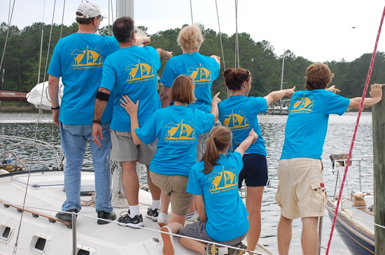 The crew of “Second Wind” sporting more turquoise than any other boat. and showing off the logo of this year’s T-shirt. They also point the way to one more page of photos.[page]