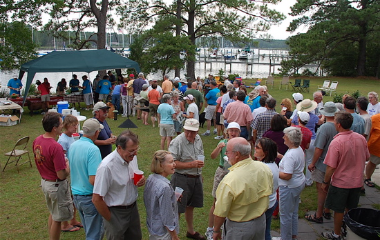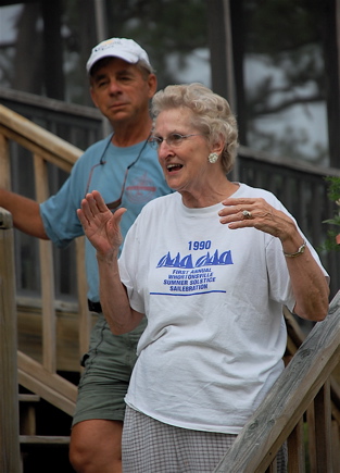 Reba Tiller, a part of the WYTC from the start, sporting that first year’s (1990) t-shirt. Reba lives down the creek from the festivities, on the most sailor-ly road in Pamlico County, “Tiller Extension”.