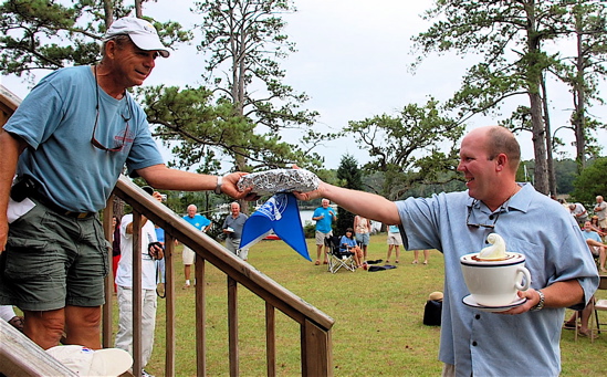 Wait, there’s more. Brian Brown won not only the ceramic WYTC cup, but for his first place finish in “Nevermoore” he also came away with a WYTC burgee and a loaf of Reba Tiller bread. .