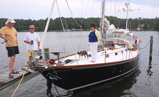 Two objects may not occupy the same space at the same time. The race had one collision – between a Tartan 34 and this Hinkley Bermuda 40 yawl which had just recently been painted.