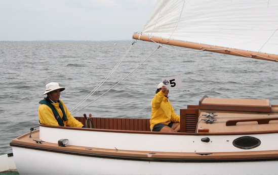 Marshall cat boat, “Grace” with Ned Ferris at the helm. (Brian Palmer photo)