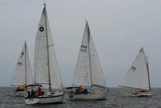 The starts were staggered according to Nick Santoro handicapping. Here are some of the boats in the second of the nine starts. (Brian Palmer photo)