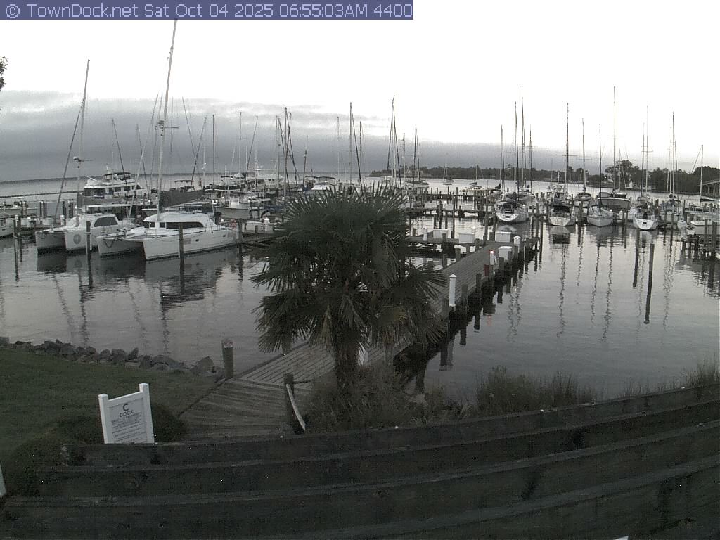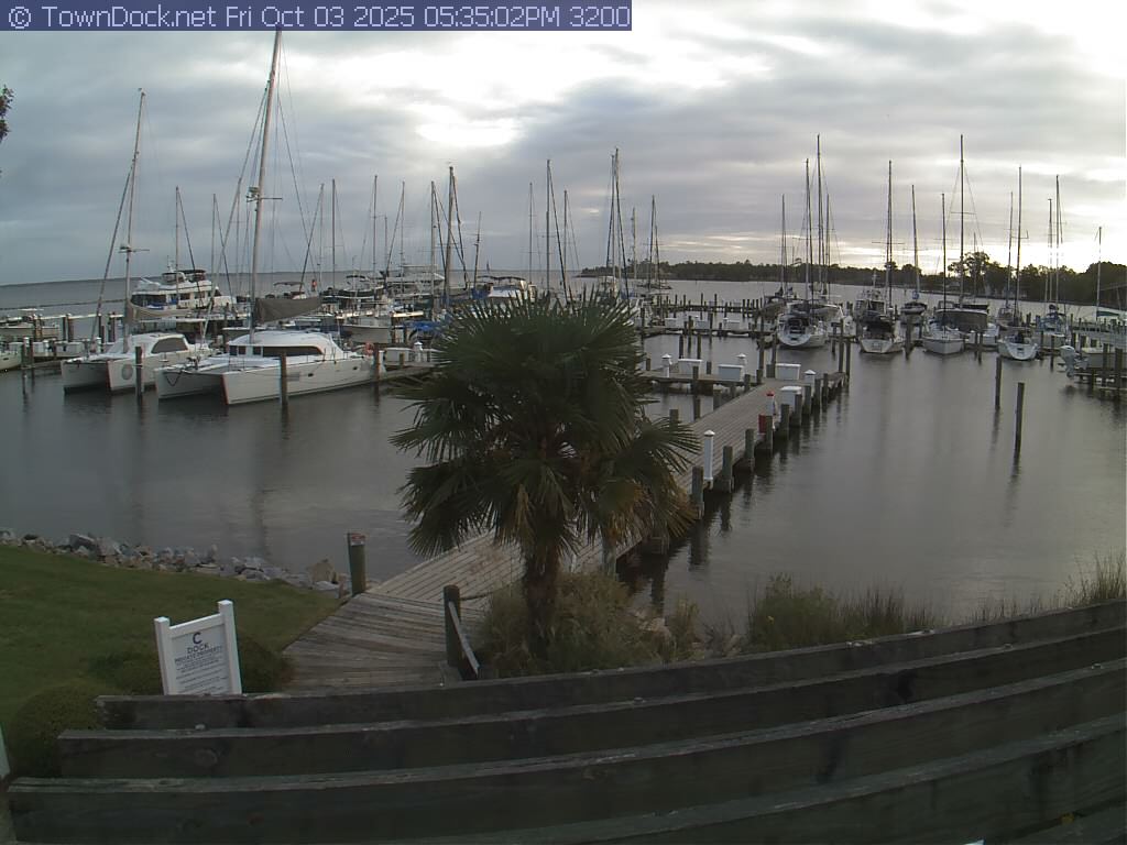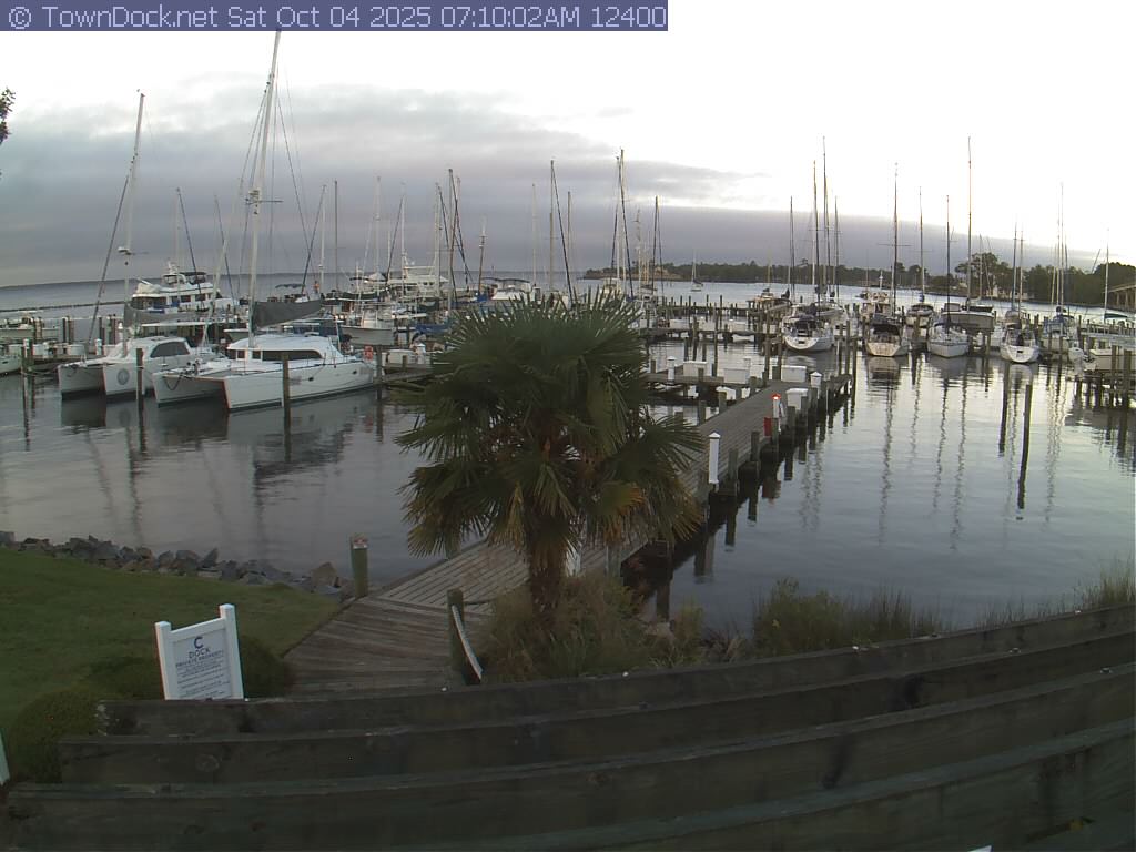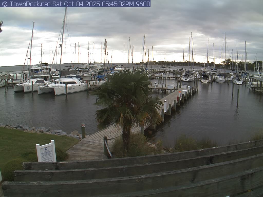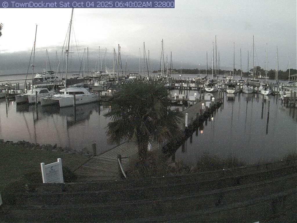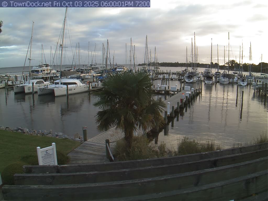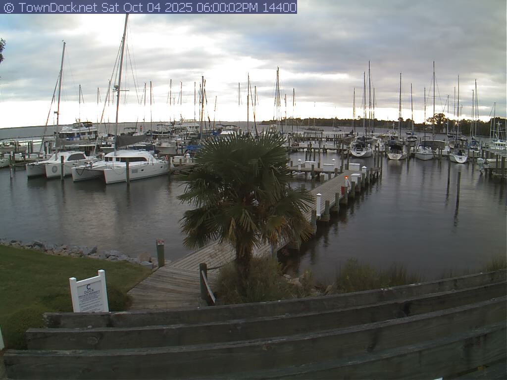 shows Oriental Harbor Village Marina, with the Oriental anchorage & Neuse River in the background. OHVM Cam takes a new picture every five minutes from dawn til just before dusk. Click on the image to see a larger version. Once you see that larger version, you can click (see arrow at right) to go back in time and see recent photos. Harbor Cam currently takes photos from 6:40am to 6:30pm.