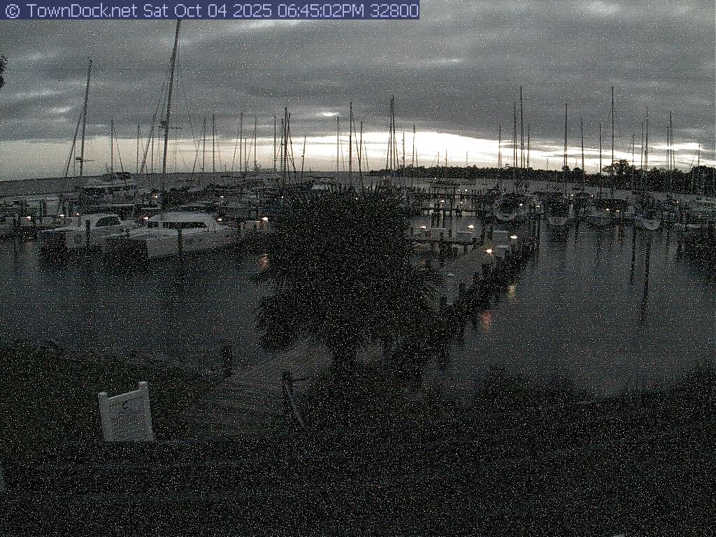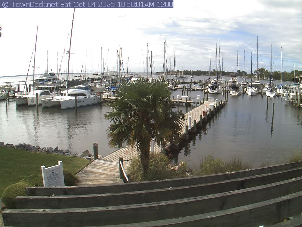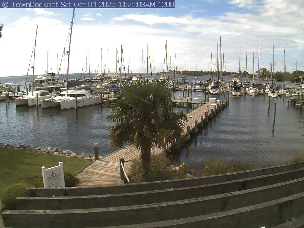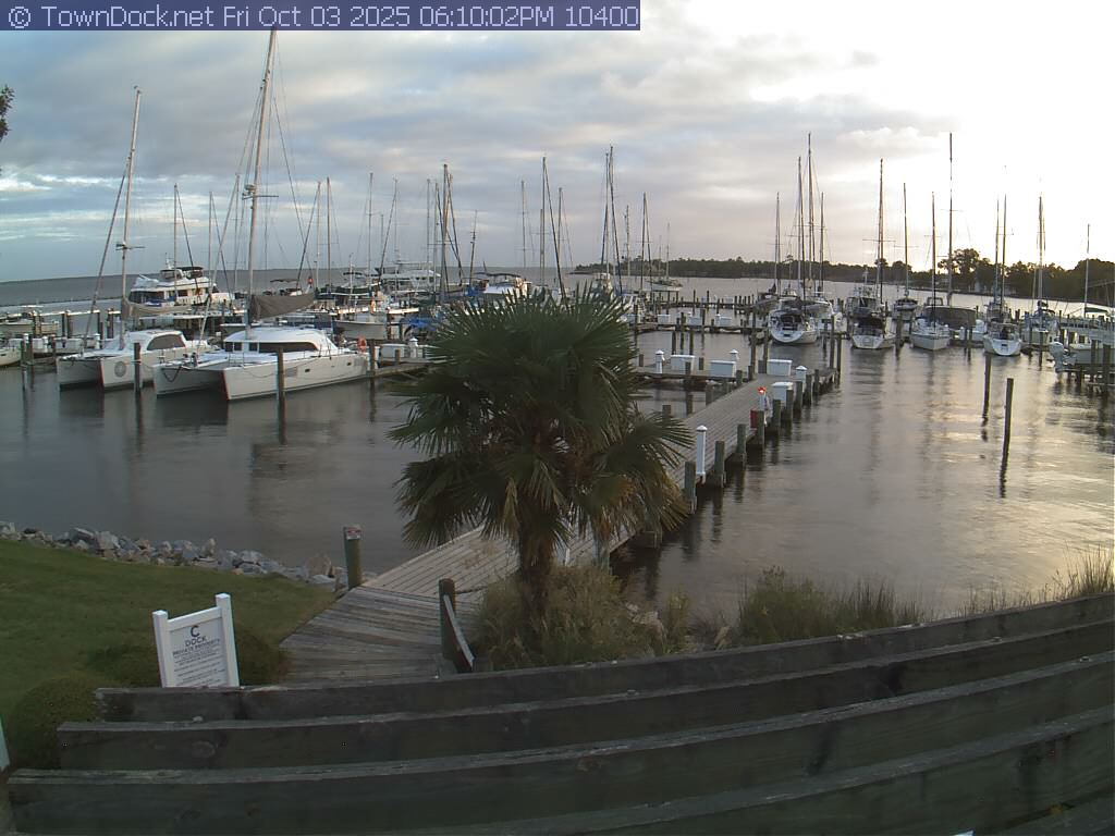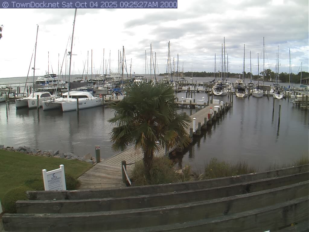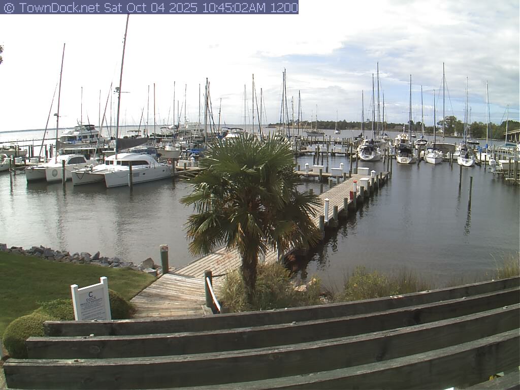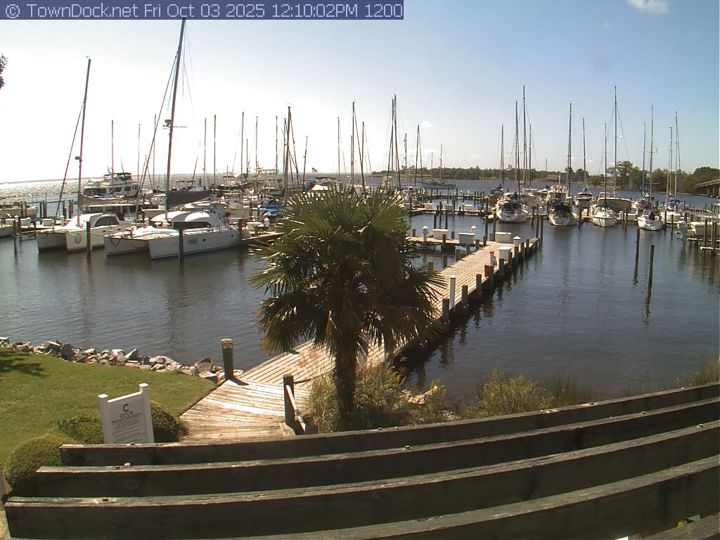 shows Oriental Harbor Village Marina, with the Oriental anchorage & Neuse River in the background. OHVM Cam takes a new picture every five minutes from dawn til just before dusk. Click on the image to see a larger version. Once you see that larger version, you can click (see arrow at right) to go back in time and see recent photos. Harbor Cam currently takes photos from 6:40am to 6:30pm.