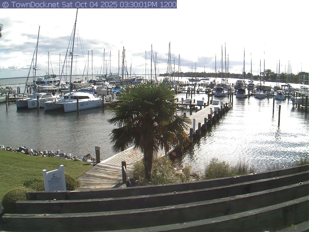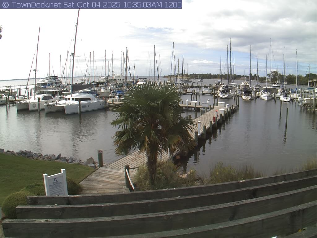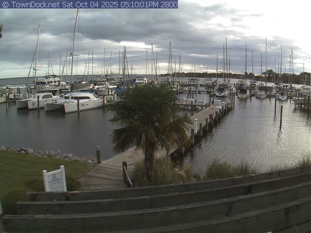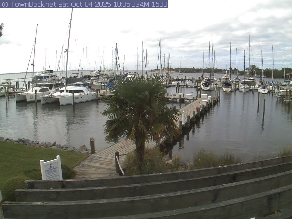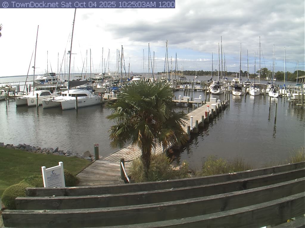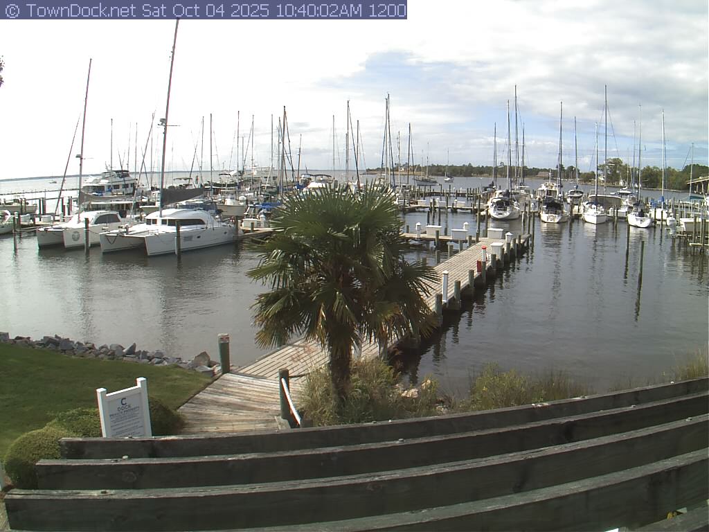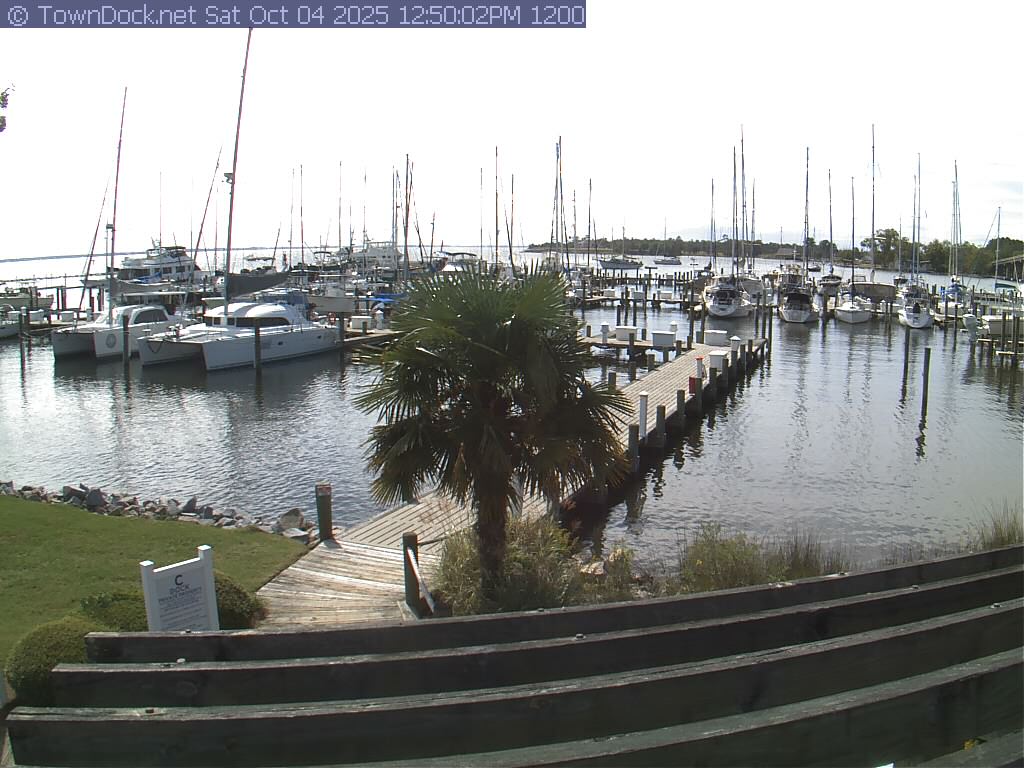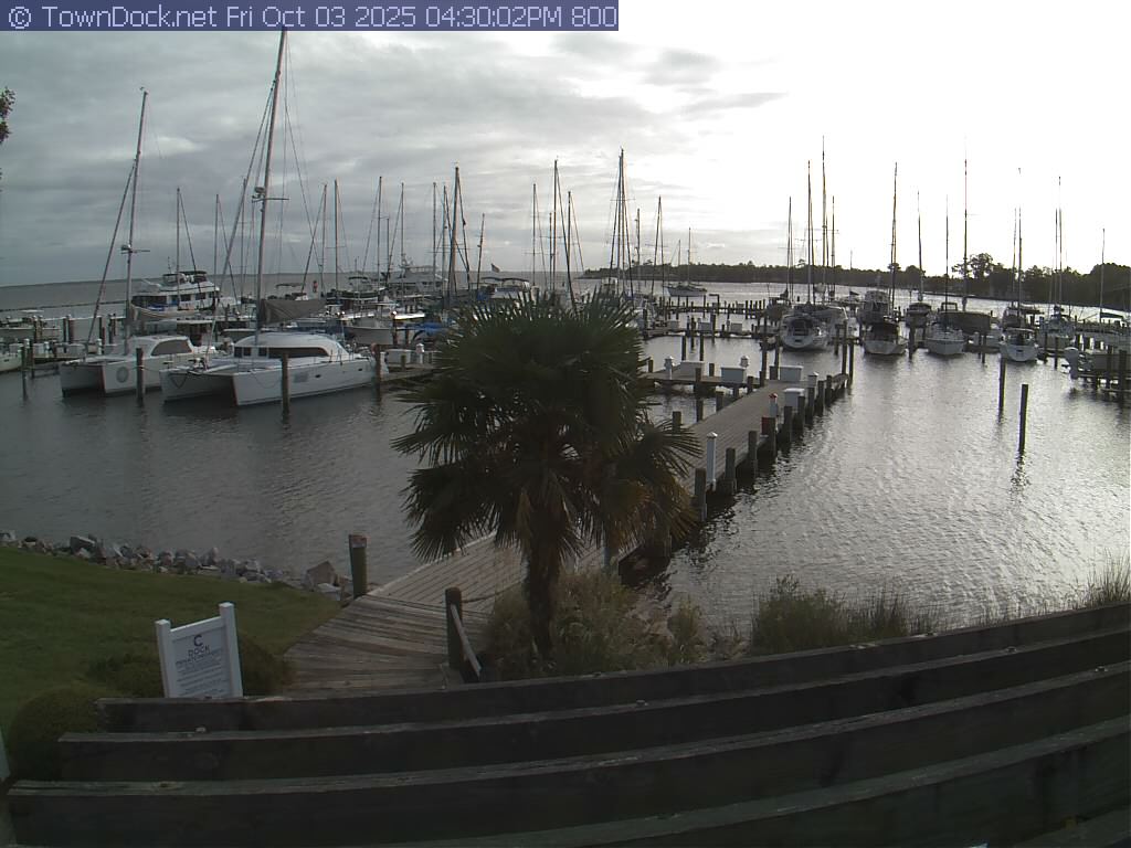 shows Oriental Harbor Village Marina, with the Oriental anchorage & Neuse River in the background. OHVM Cam takes a new picture every five minutes from dawn til just before dusk. Click on the image to see a larger version. Once you see that larger version, you can click (see arrow at right) to go back in time and see recent photos. Harbor Cam currently takes photos from 6:40am to 6:30pm.