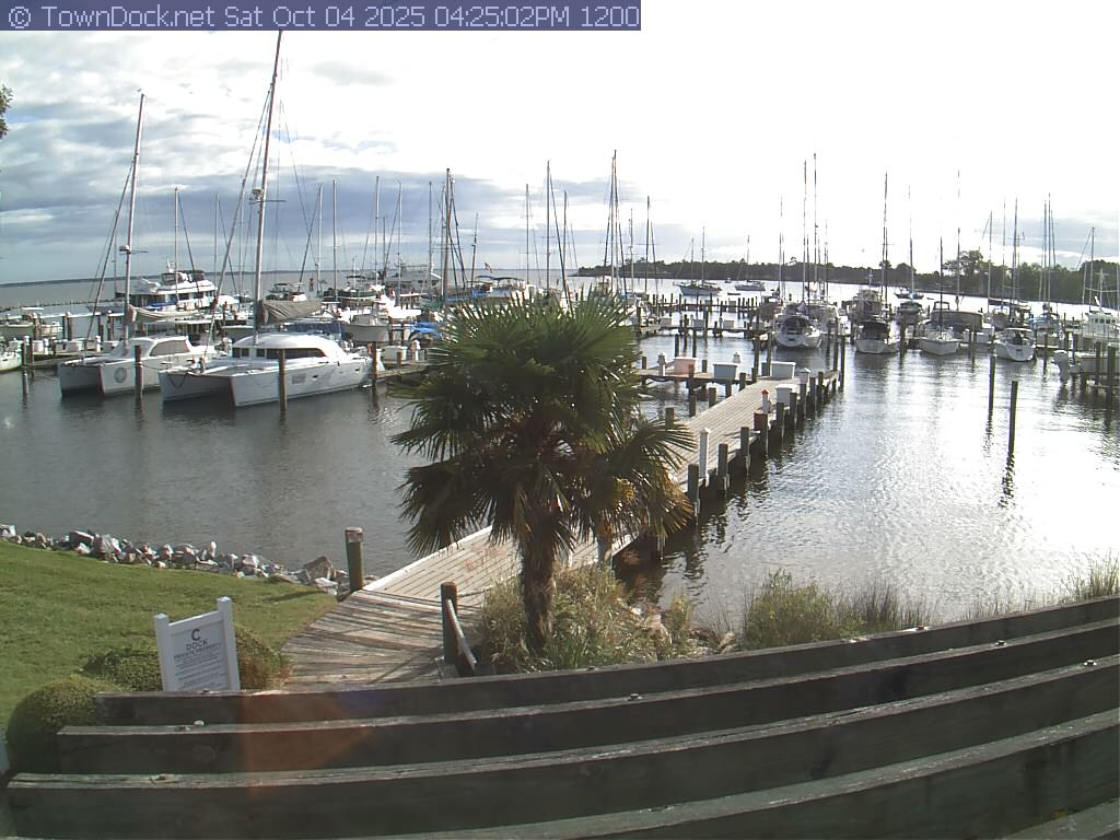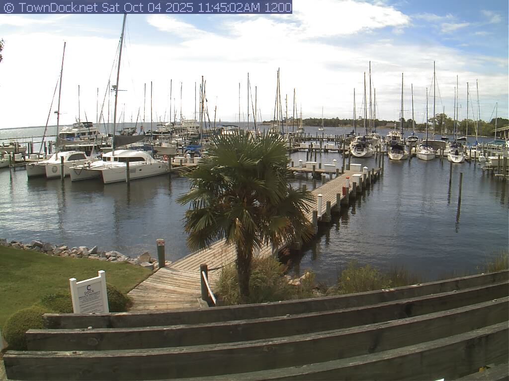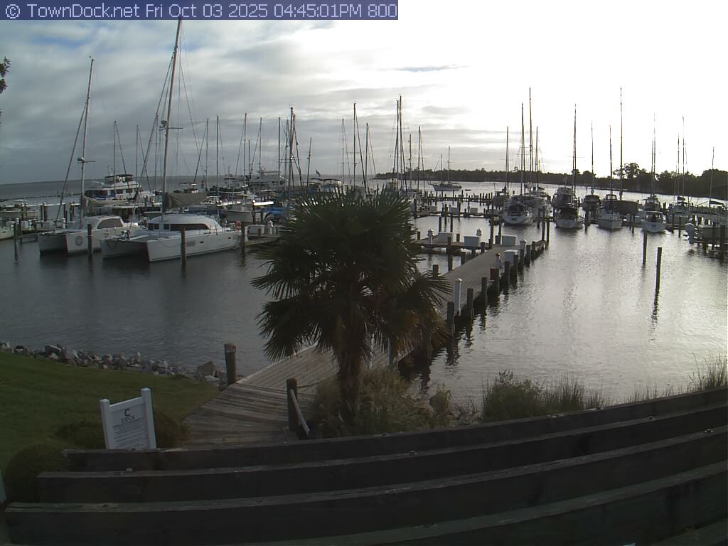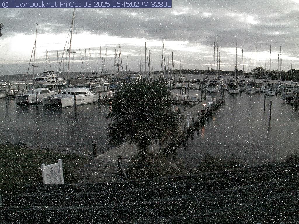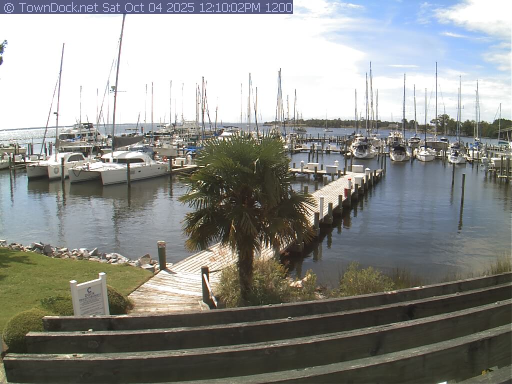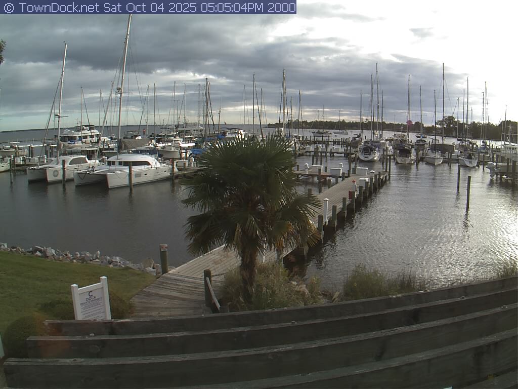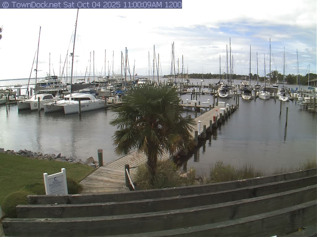 shows Oriental Harbor Village Marina, with the Oriental anchorage & Neuse River in the background. OHVM Cam takes a new picture every five minutes from dawn til just before dusk. Click on the image to see a larger version. Once you see that larger version, you can click (see arrow at right) to go back in time and see recent photos. Harbor Cam currently takes photos from 6:40am to 6:30pm.