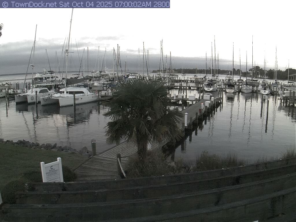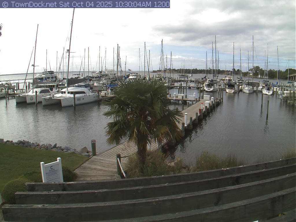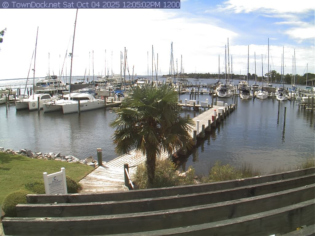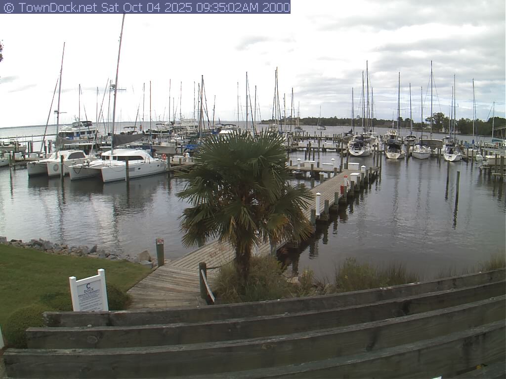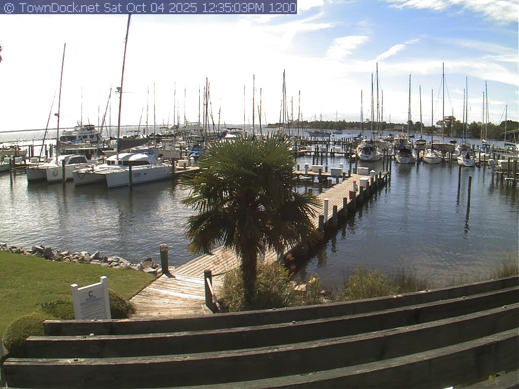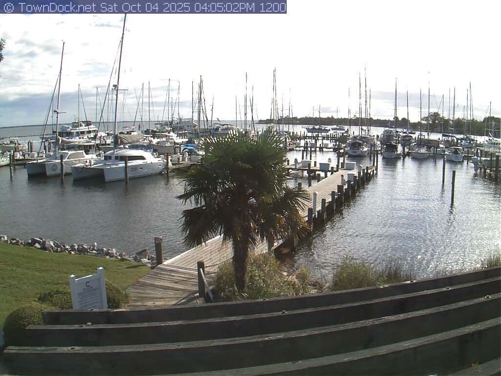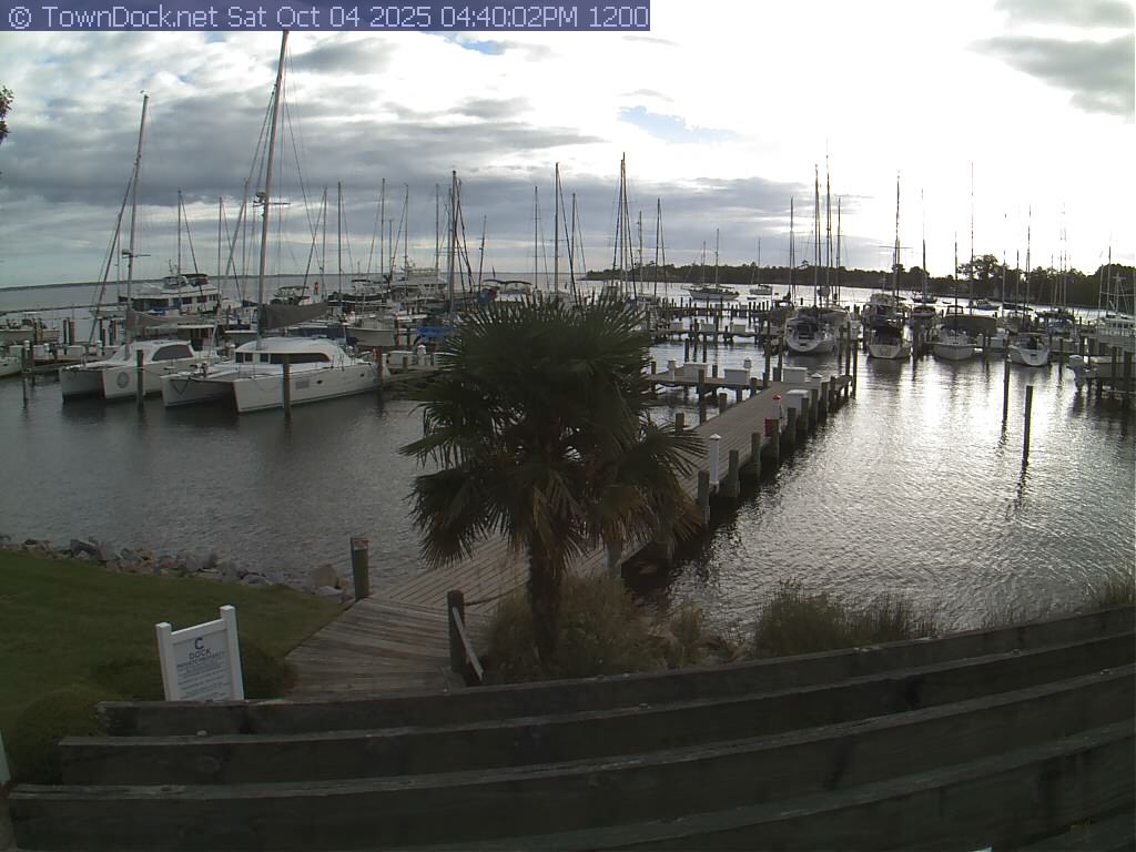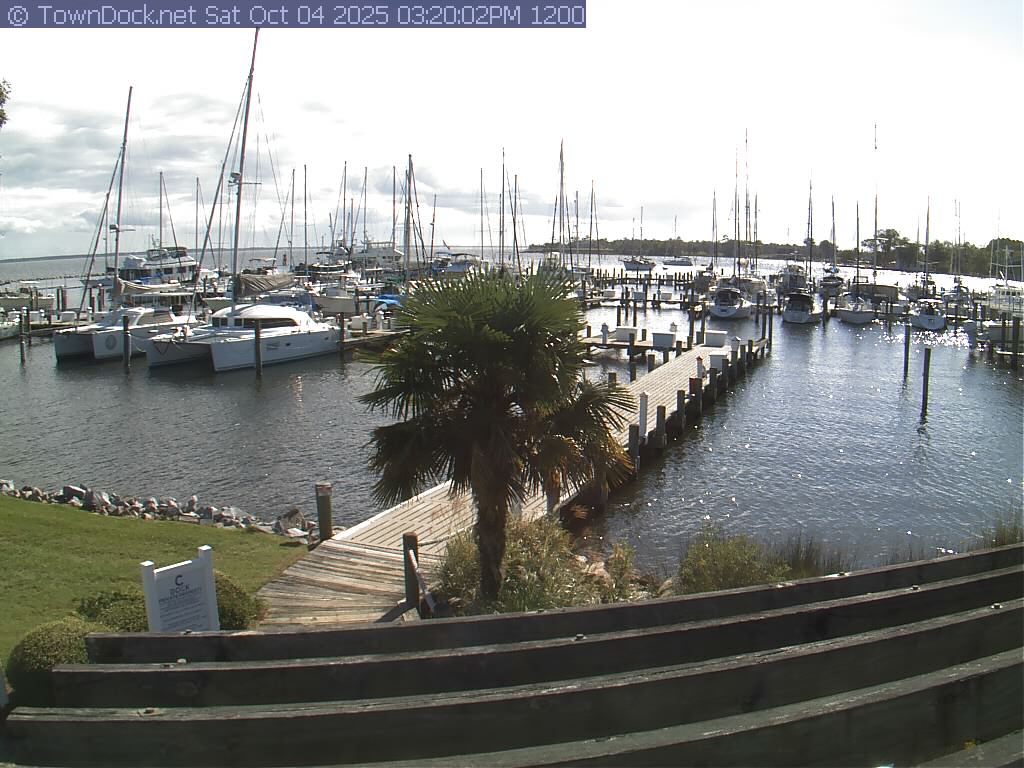 shows Oriental Harbor Village Marina, with the Oriental anchorage & Neuse River in the background. OHVM Cam takes a new picture every five minutes from dawn til just before dusk. Click on the image to see a larger version. Once you see that larger version, you can click (see arrow at right) to go back in time and see recent photos. Harbor Cam currently takes photos from 6:40am to 6:30pm.