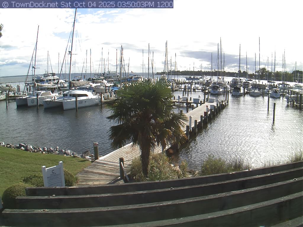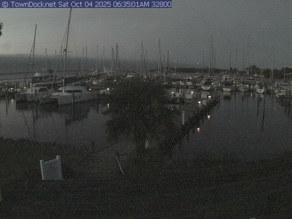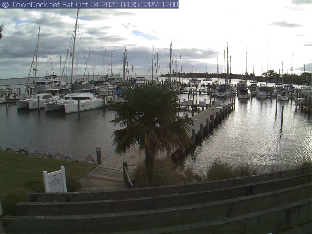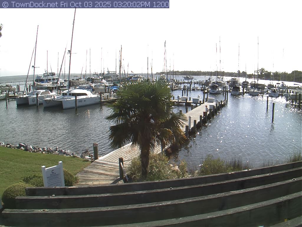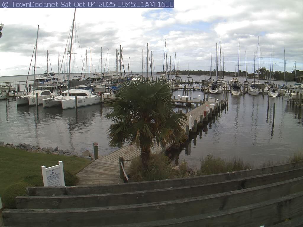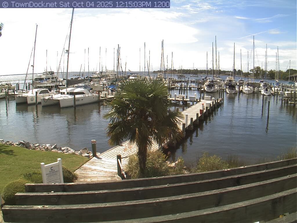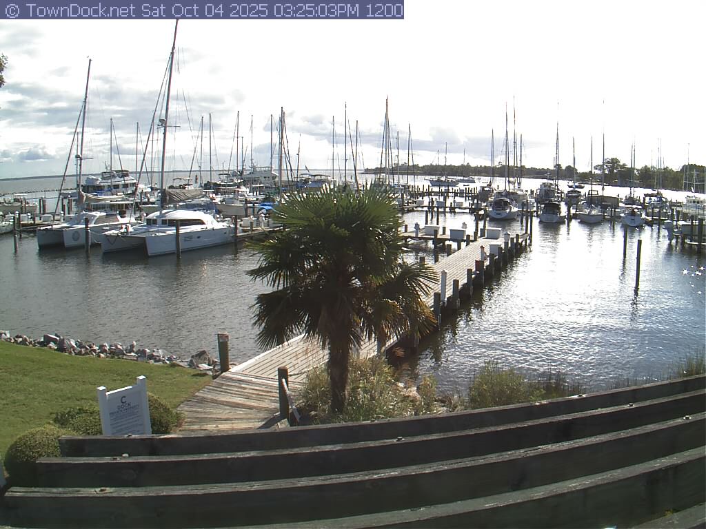 shows Oriental Harbor Village Marina, with the Oriental anchorage & Neuse River in the background. OHVM Cam takes a new picture every five minutes from dawn til just before dusk. Click on the image to see a larger version. Once you see that larger version, you can click (see arrow at right) to go back in time and see recent photos. Harbor Cam currently takes photos from 6:40am to 6:30pm.