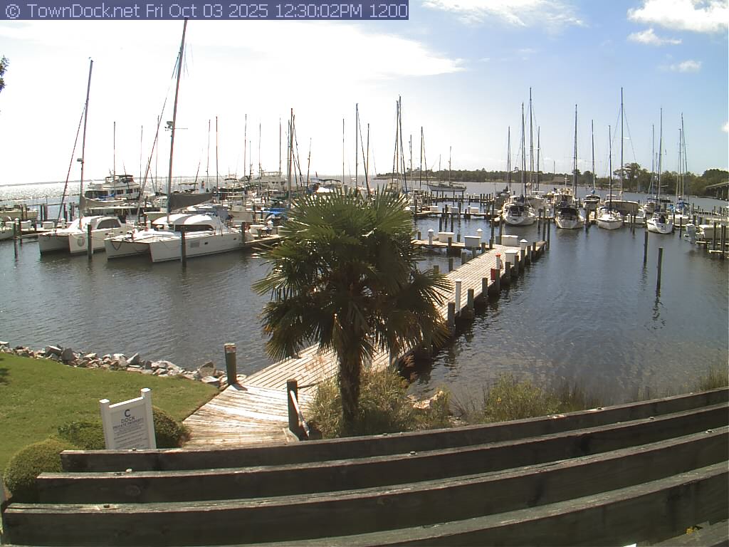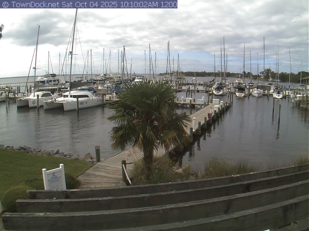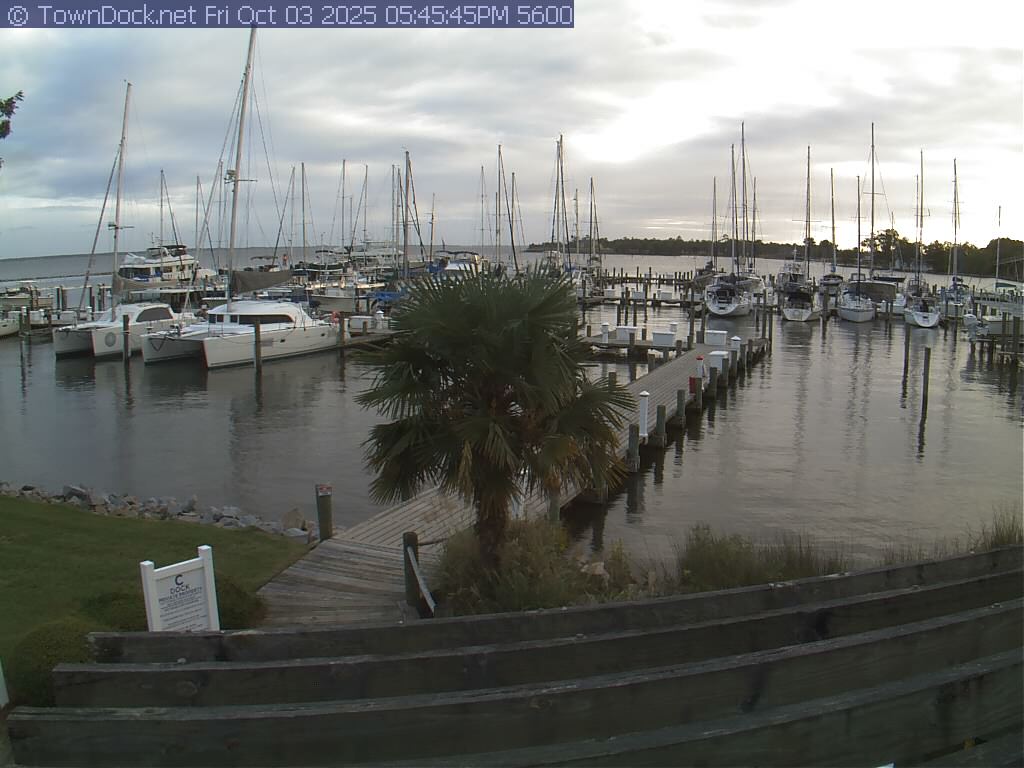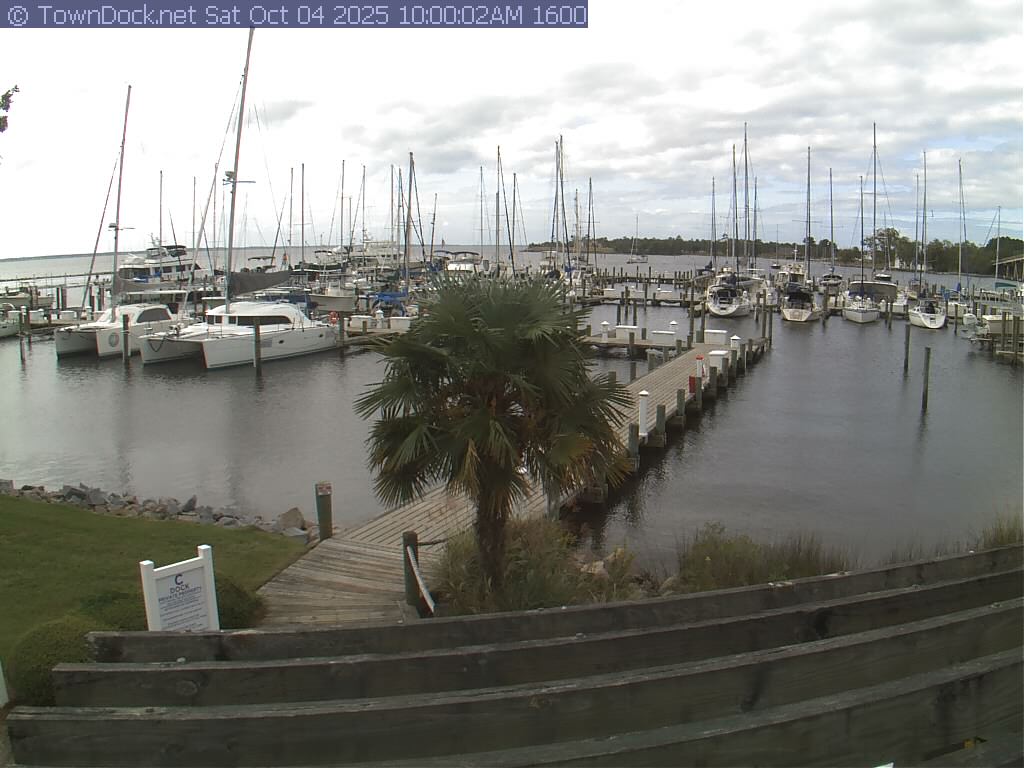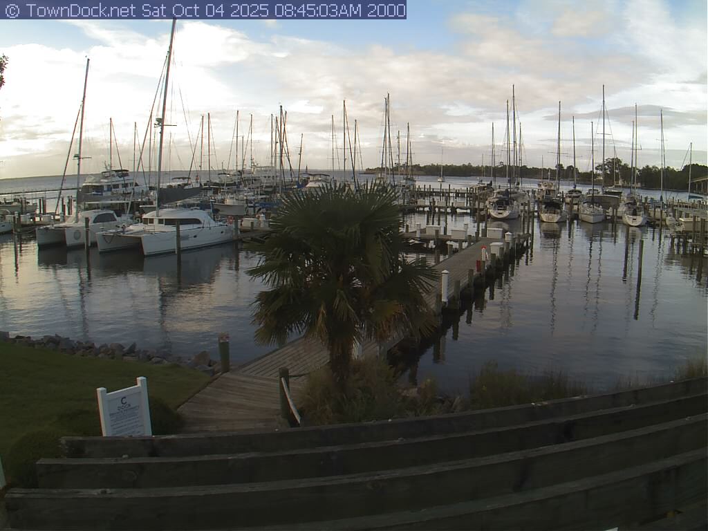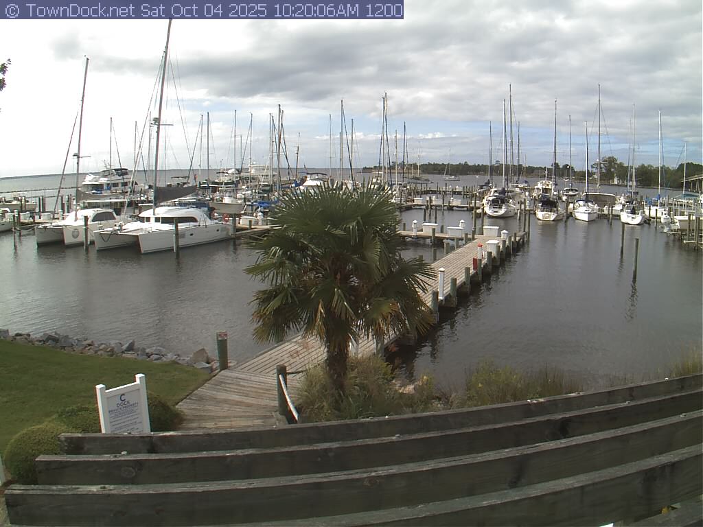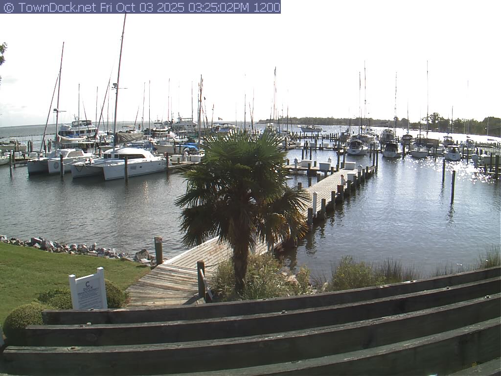 shows Oriental Harbor Village Marina, with the Oriental anchorage & Neuse River in the background. OHVM Cam takes a new picture every five minutes from dawn til just before dusk. Click on the image to see a larger version. Once you see that larger version, you can click (see arrow at right) to go back in time and see recent photos. Harbor Cam currently takes photos from 6:40am to 6:30pm.