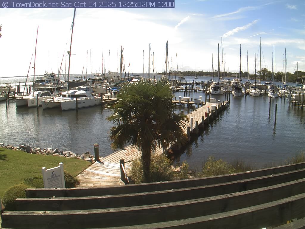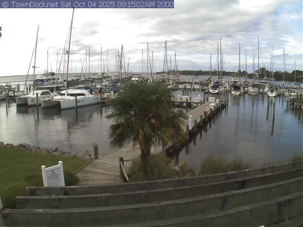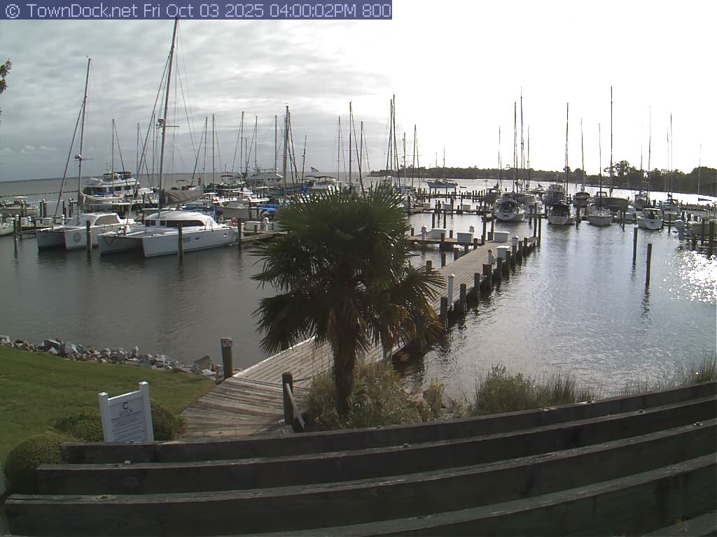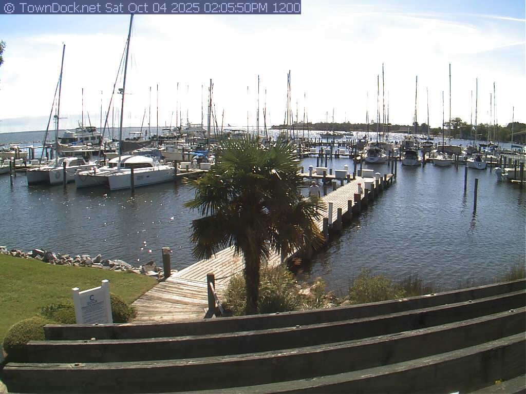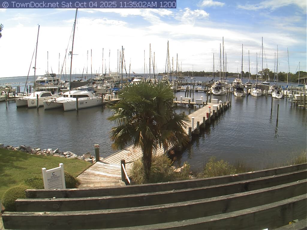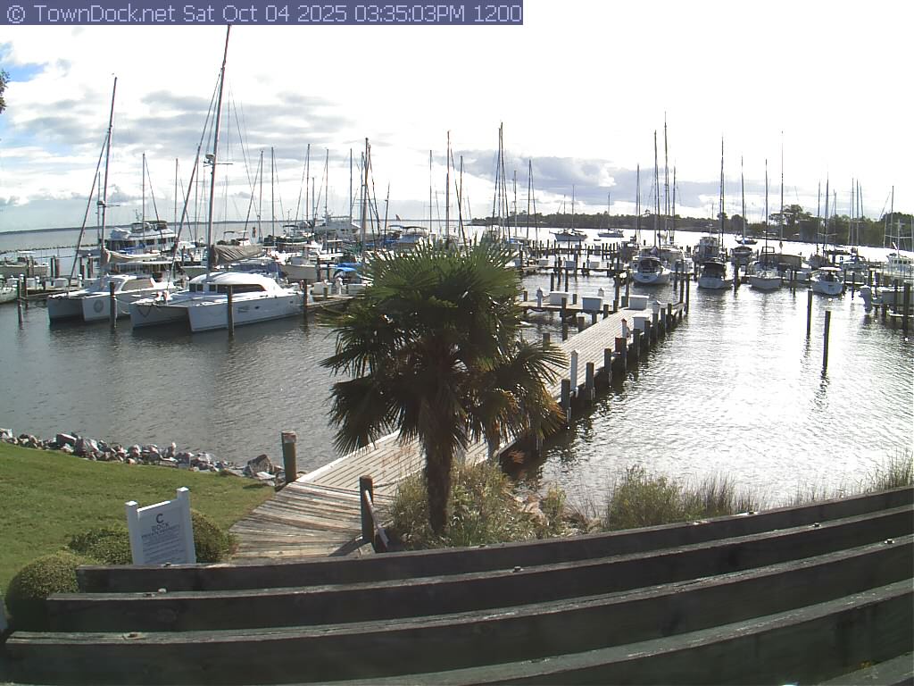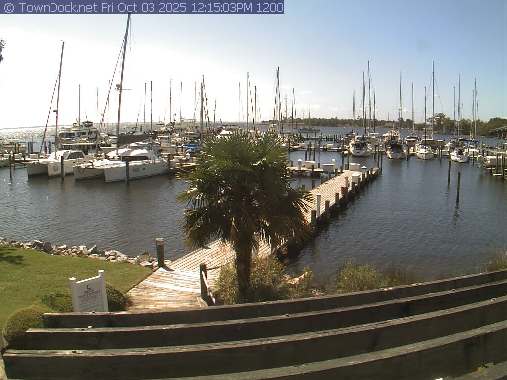 shows Oriental Harbor Village Marina, with the Oriental anchorage & Neuse River in the background. OHVM Cam takes a new picture every five minutes from dawn til just before dusk. Click on the image to see a larger version. Once you see that larger version, you can click (see arrow at right) to go back in time and see recent photos. Harbor Cam currently takes photos from 6:40am to 6:30pm.