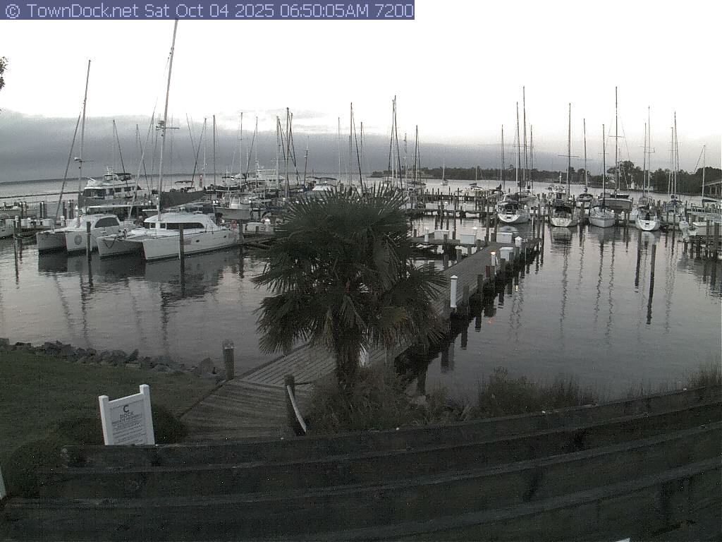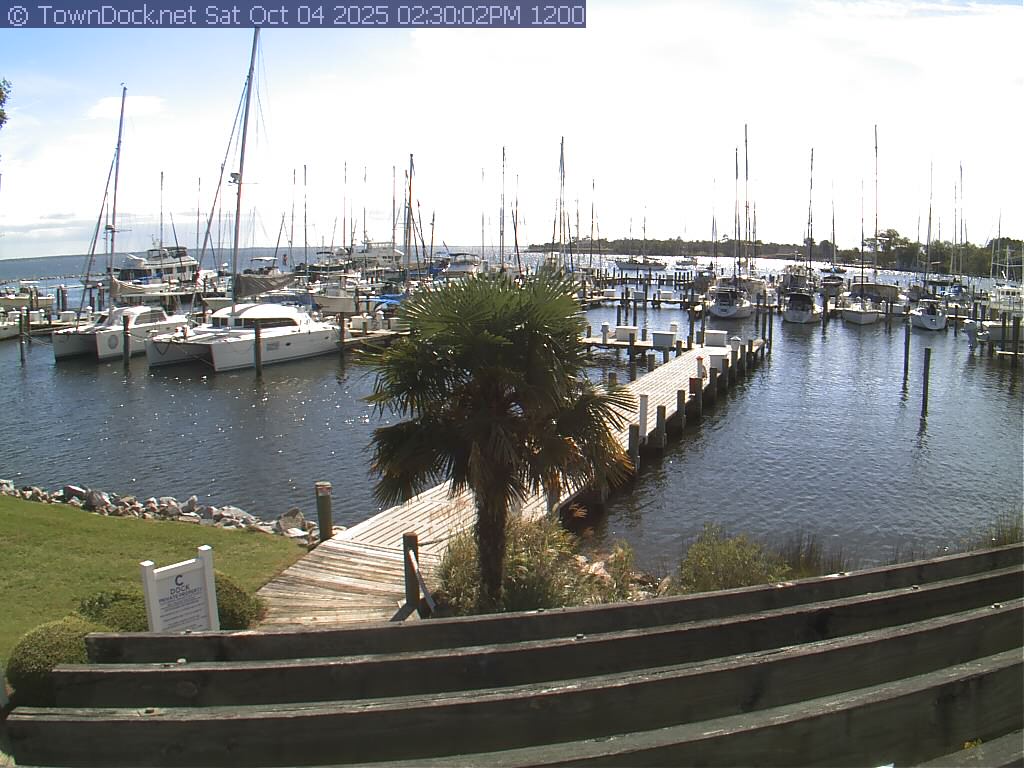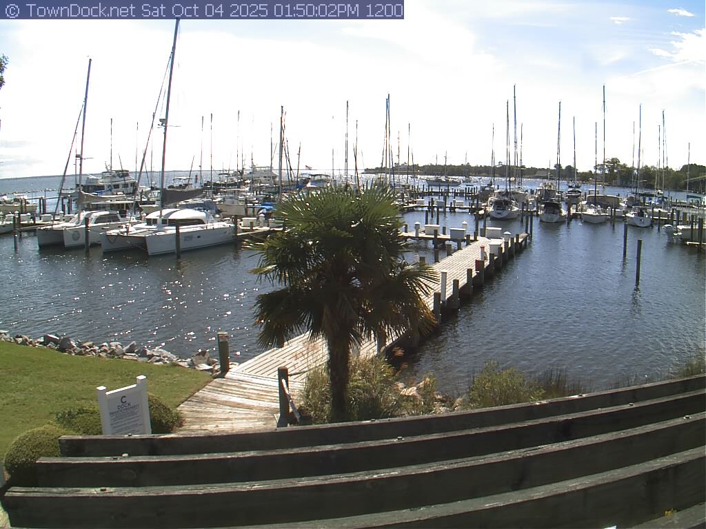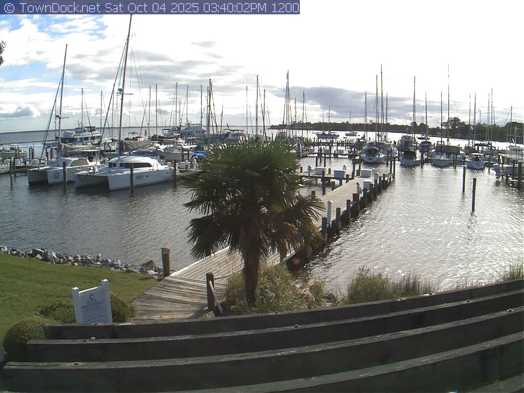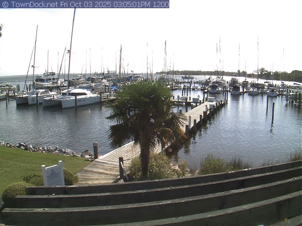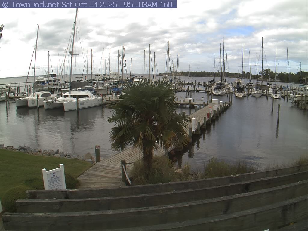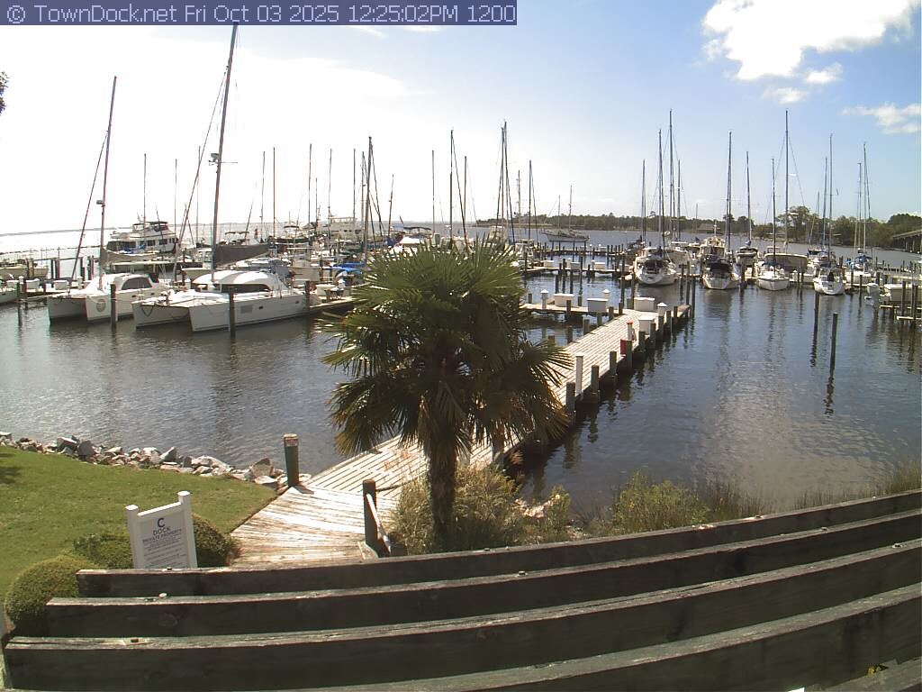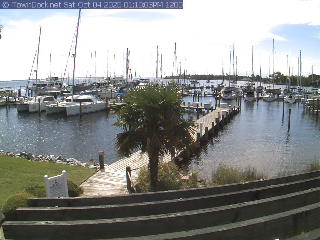 shows Oriental Harbor Village Marina, with the Oriental anchorage & Neuse River in the background. OHVM Cam takes a new picture every five minutes from dawn til just before dusk. Click on the image to see a larger version. Once you see that larger version, you can click (see arrow at right) to go back in time and see recent photos. Harbor Cam currently takes photos from 6:40am to 6:30pm.