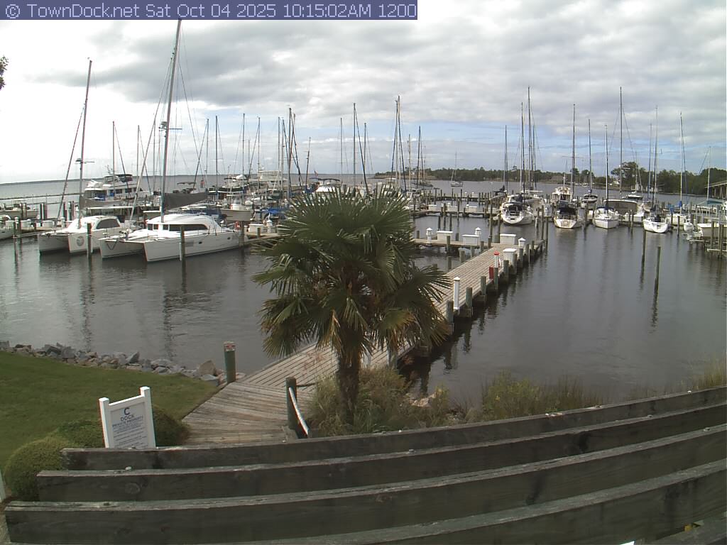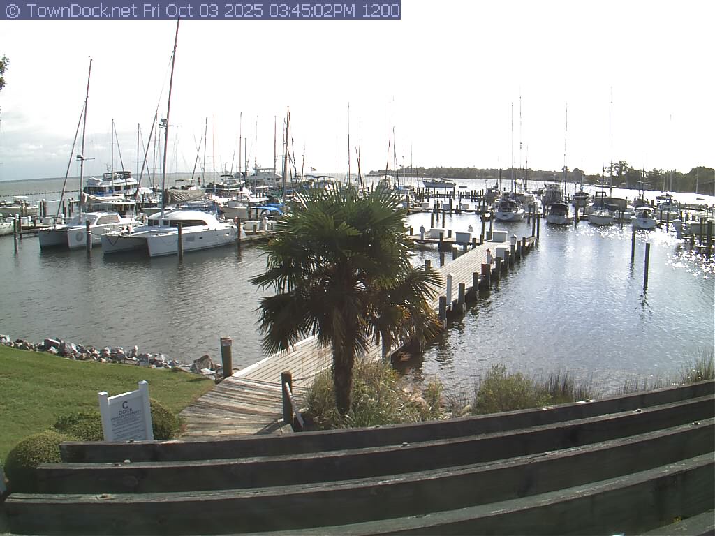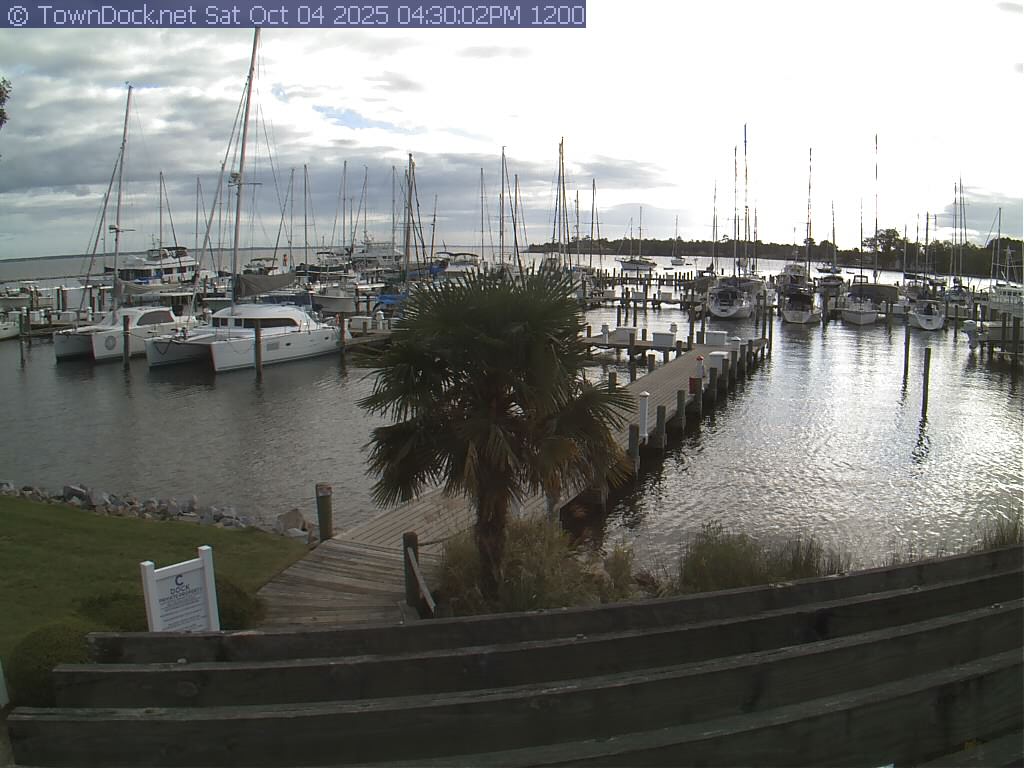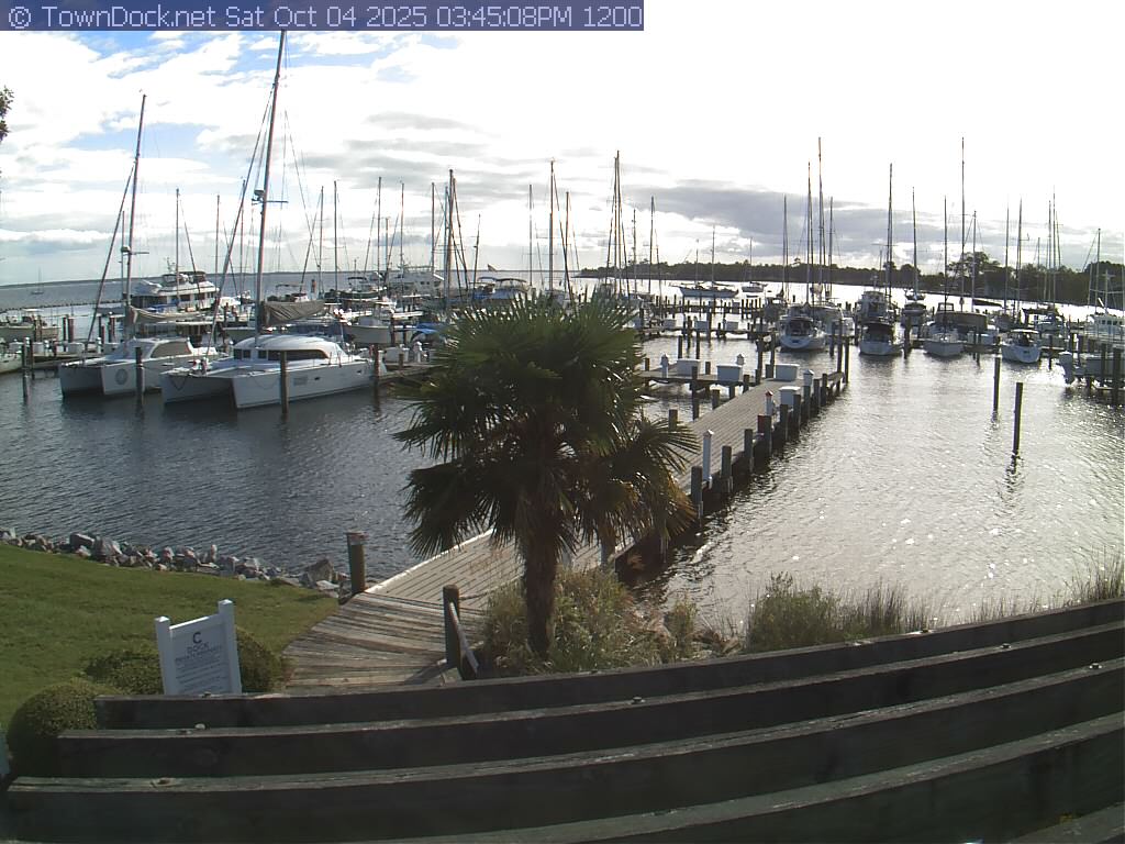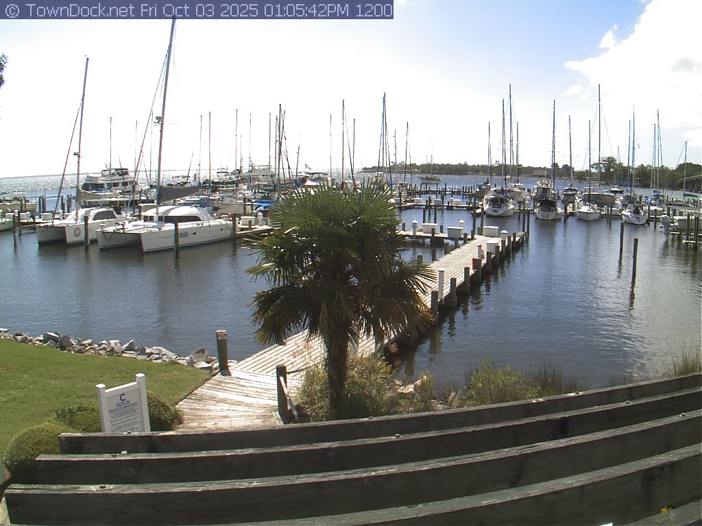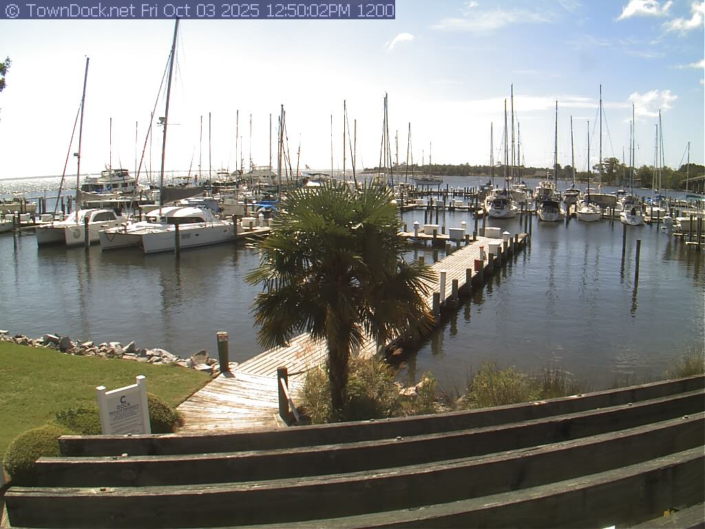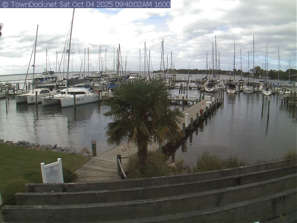 shows Oriental Harbor Village Marina, with the Oriental anchorage & Neuse River in the background. OHVM Cam takes a new picture every five minutes from dawn til just before dusk. Click on the image to see a larger version. Once you see that larger version, you can click (see arrow at right) to go back in time and see recent photos. Harbor Cam currently takes photos from 6:40am to 6:30pm.