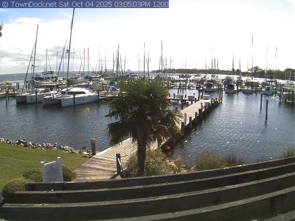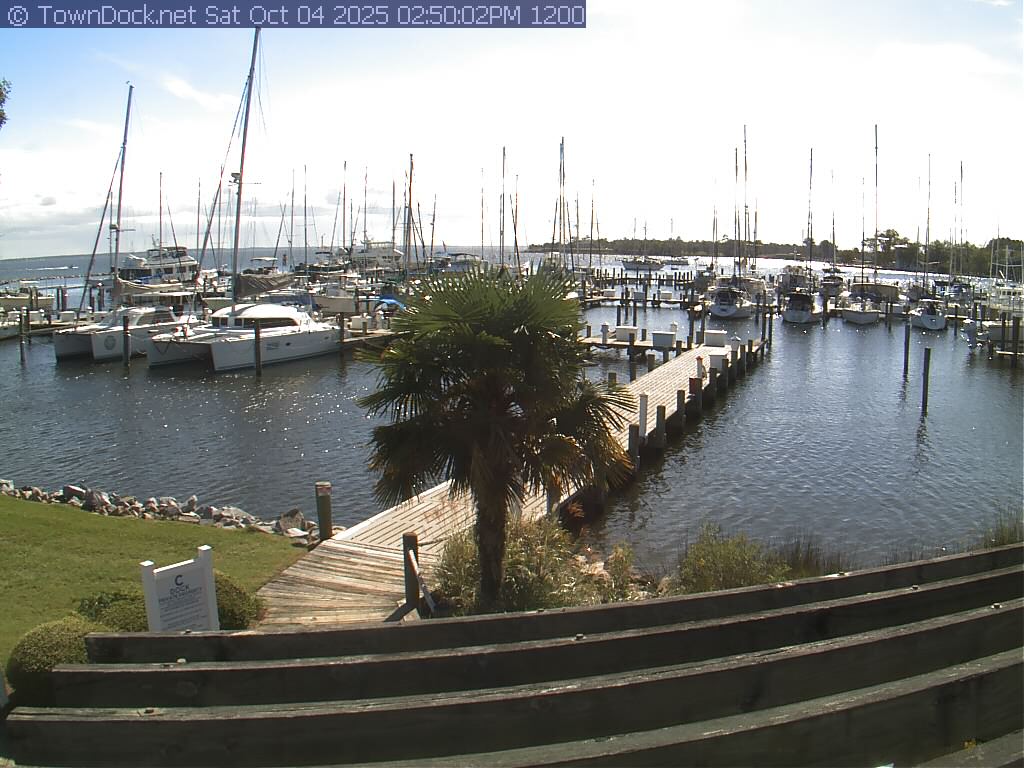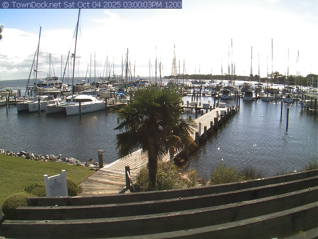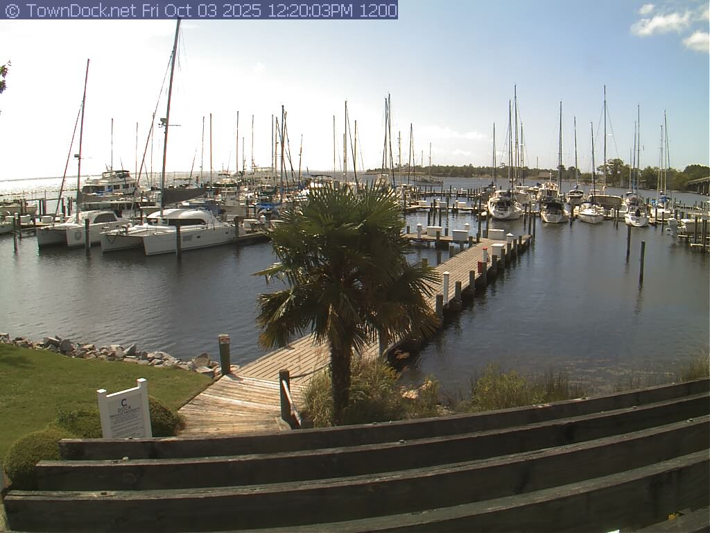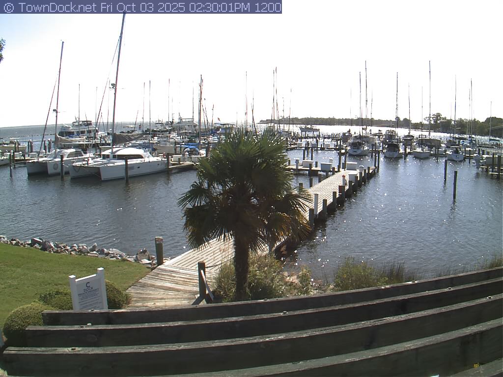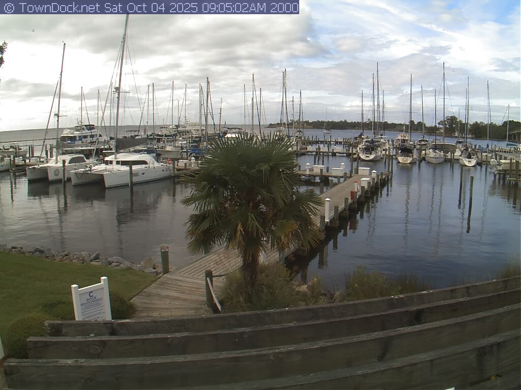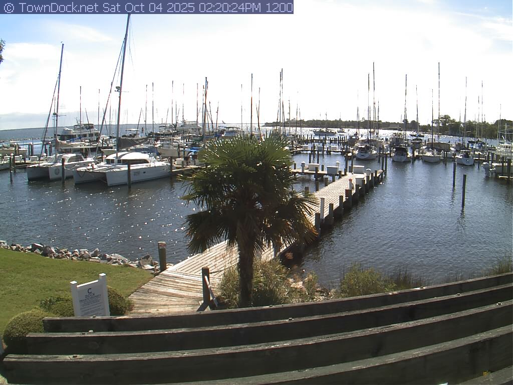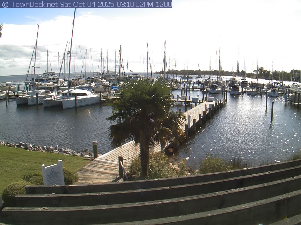 shows Oriental Harbor Village Marina, with the Oriental anchorage & Neuse River in the background. OHVM Cam takes a new picture every five minutes from dawn til just before dusk. Click on the image to see a larger version. Once you see that larger version, you can click (see arrow at right) to go back in time and see recent photos. Harbor Cam currently takes photos from 6:40am to 6:30pm.
