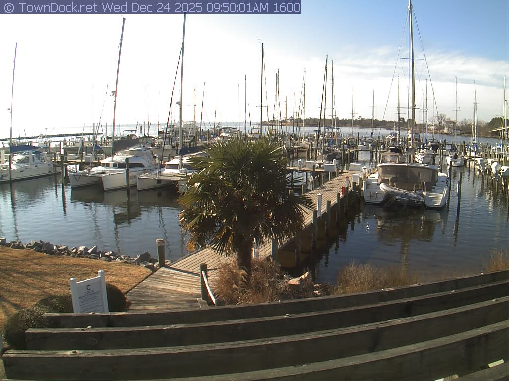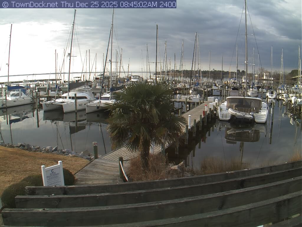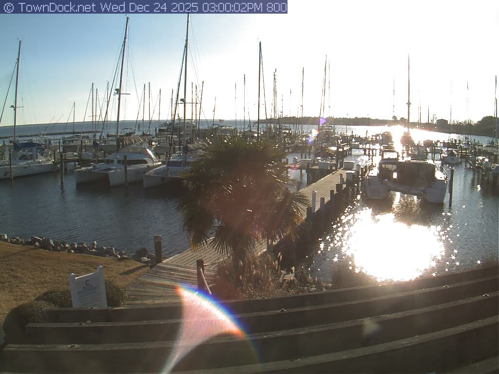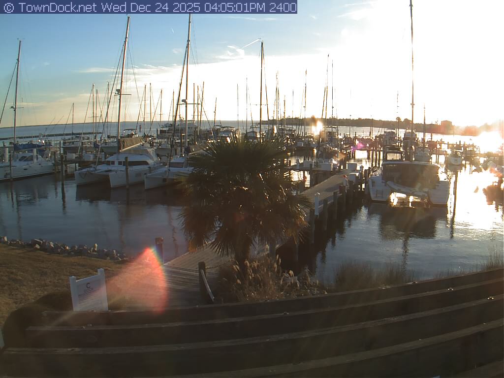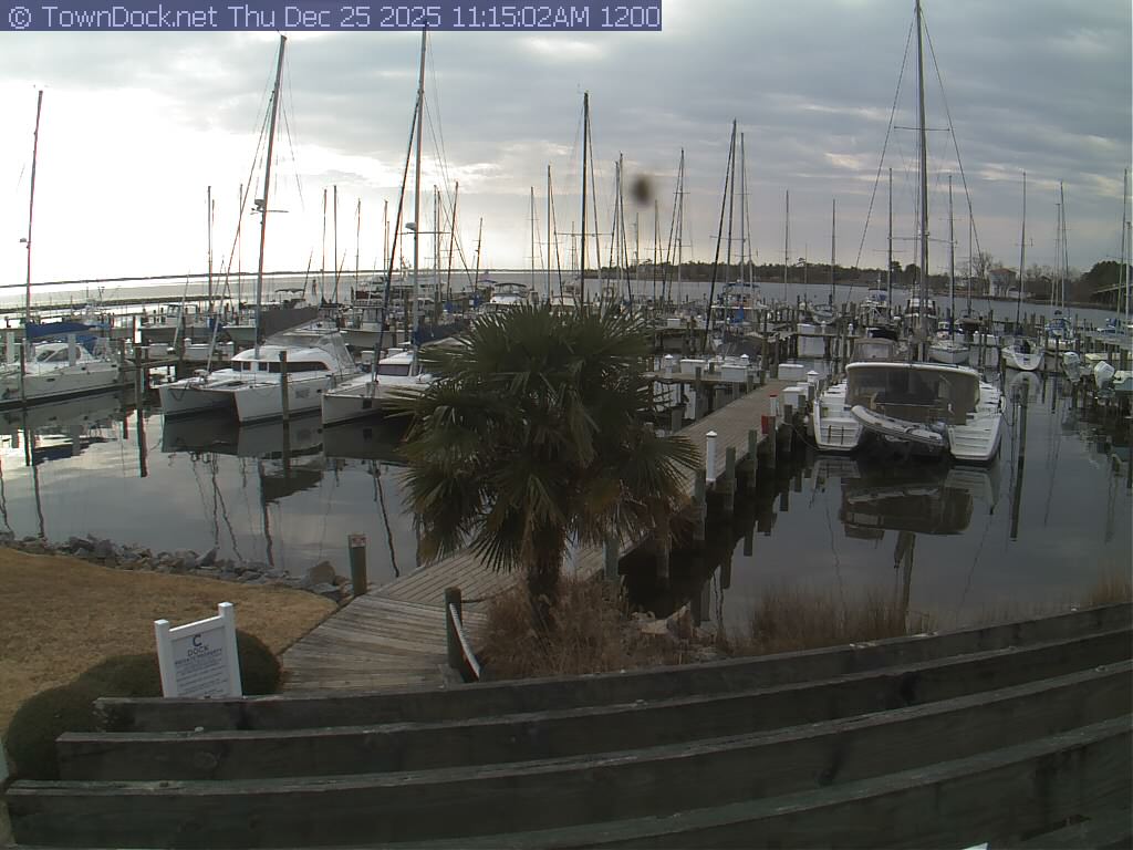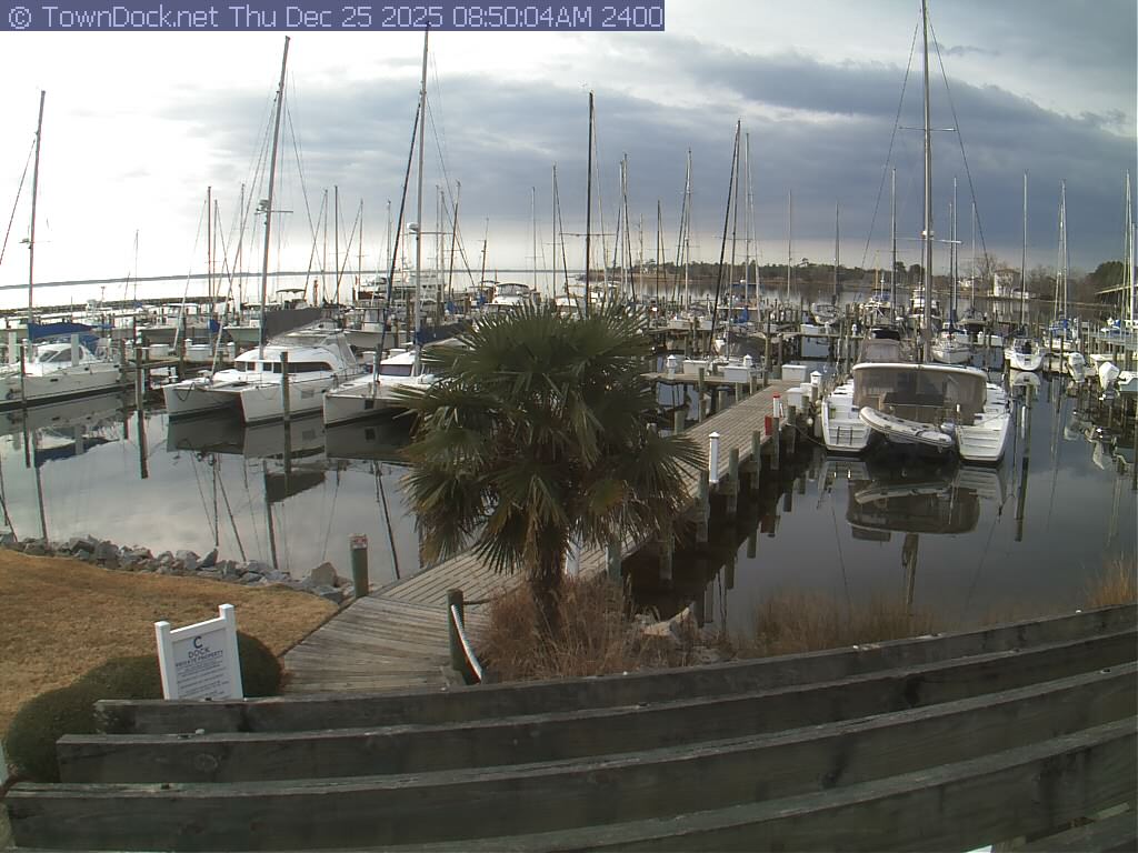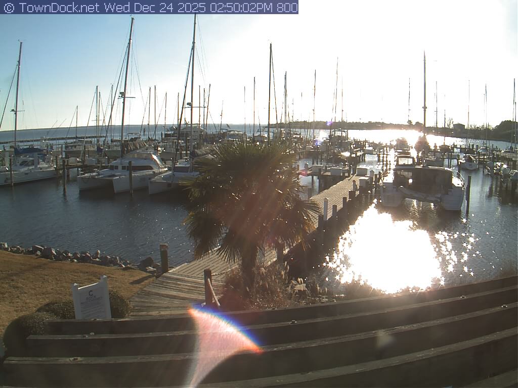 shows Oriental Harbor Village Marina, with the Oriental anchorage & Neuse River in the background. OHVM Cam takes a new picture every five minutes from dawn til just before dusk. Click on the image to see a larger version. Once you see that larger version, you can click (see arrow at right) to go back in time and see recent photos. Harbor Cam currently takes photos from 6:00am to 5:00pm.