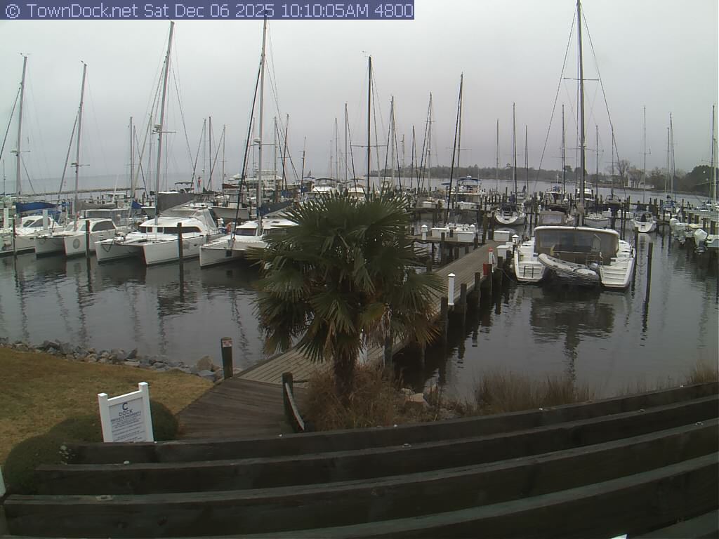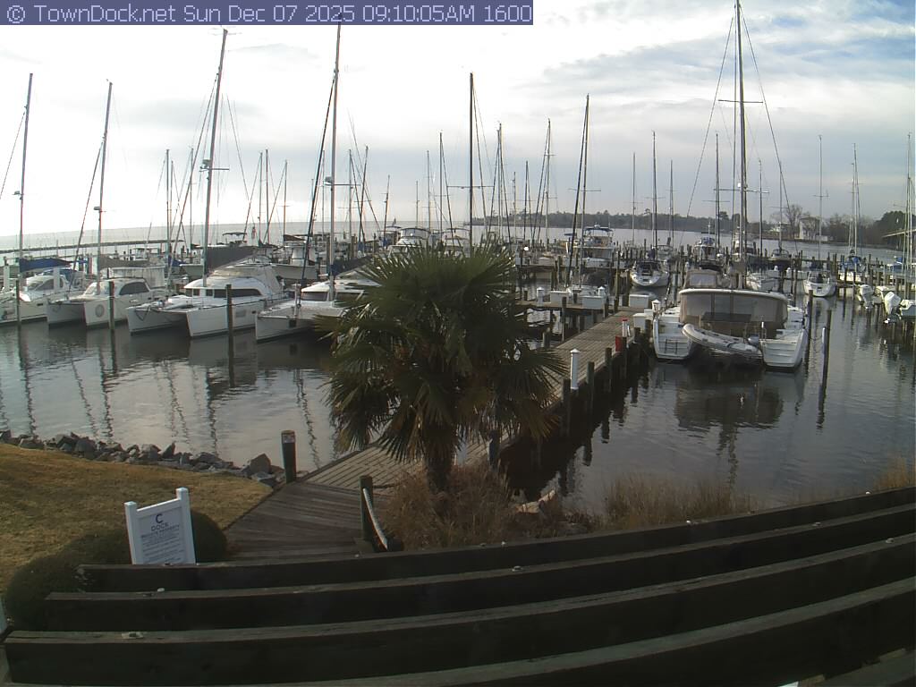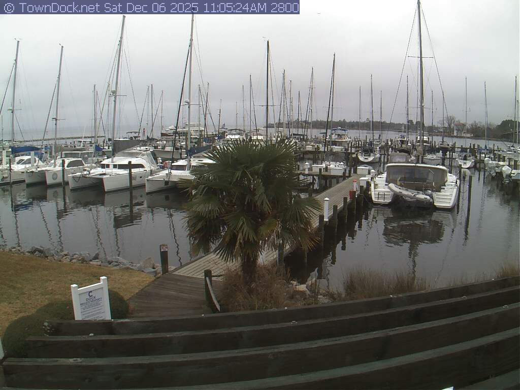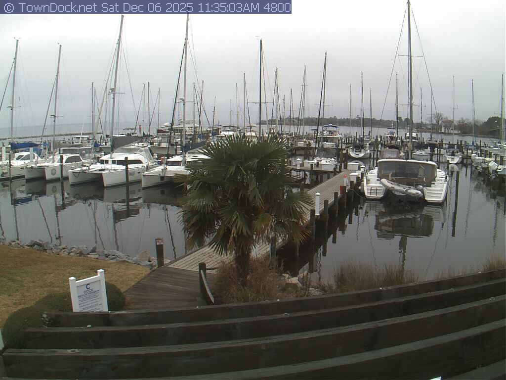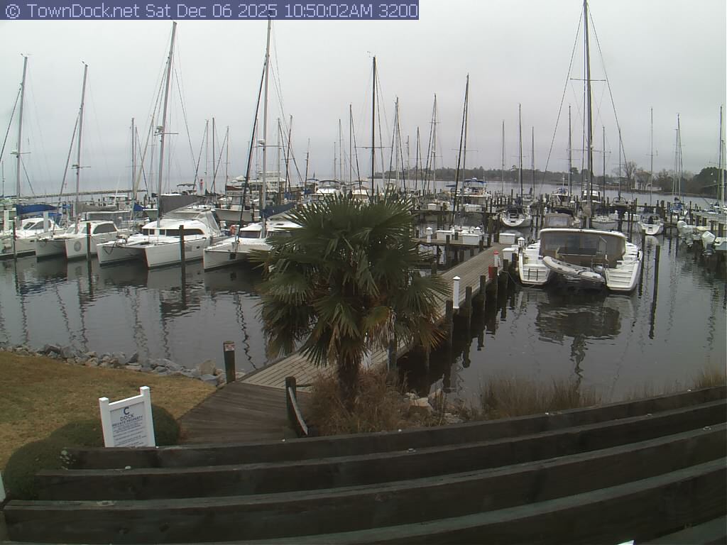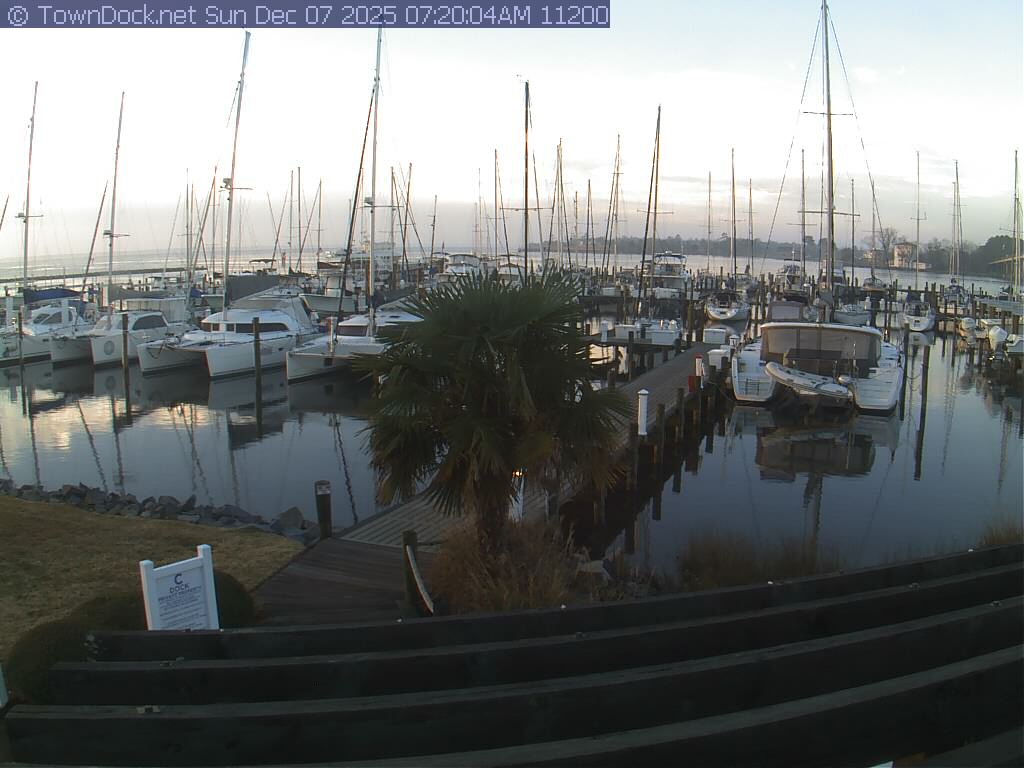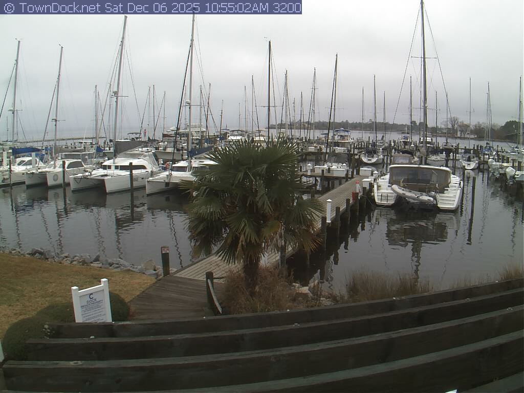 shows Oriental Harbor Village Marina, with the Oriental anchorage & Neuse River in the background. OHVM Cam takes a new picture every five minutes from dawn til just before dusk. Click on the image to see a larger version. Once you see that larger version, you can click (see arrow at right) to go back in time and see recent photos. Harbor Cam currently takes photos from 6:00am to 5:20pm.