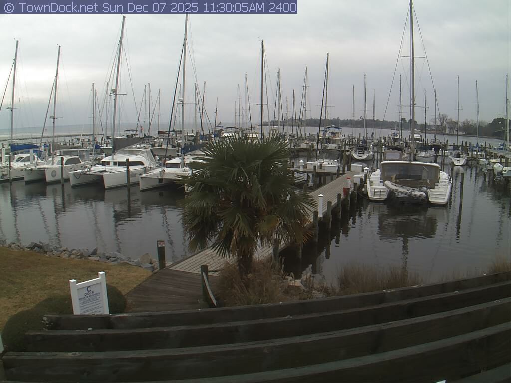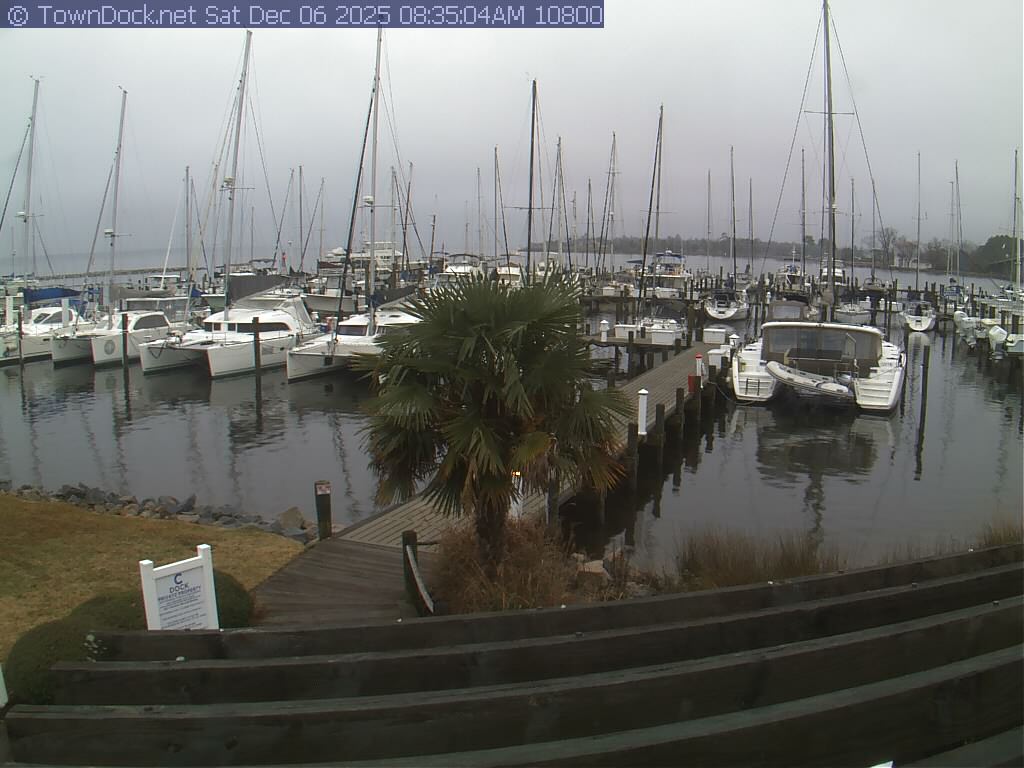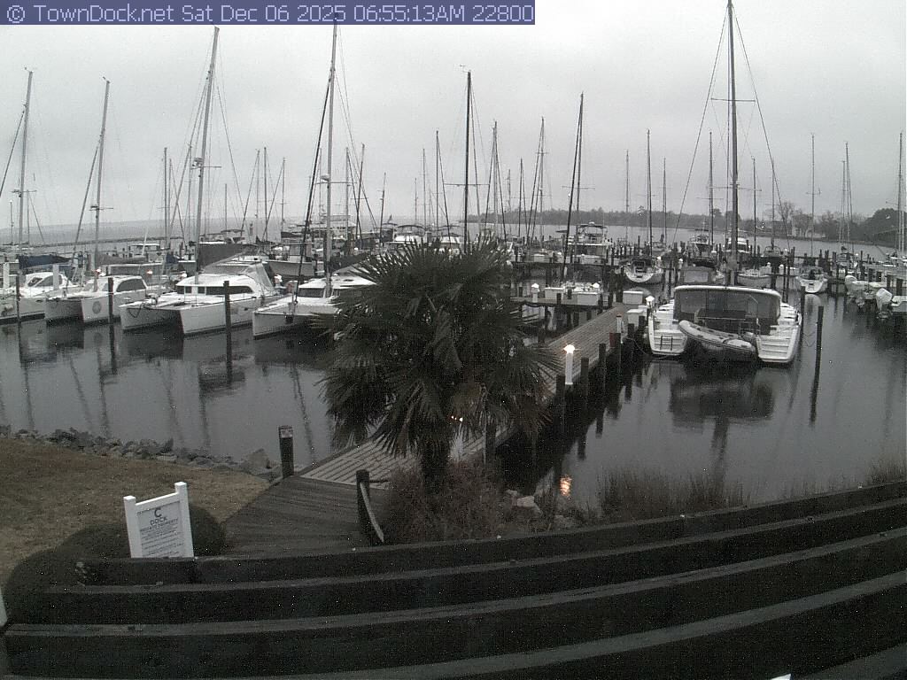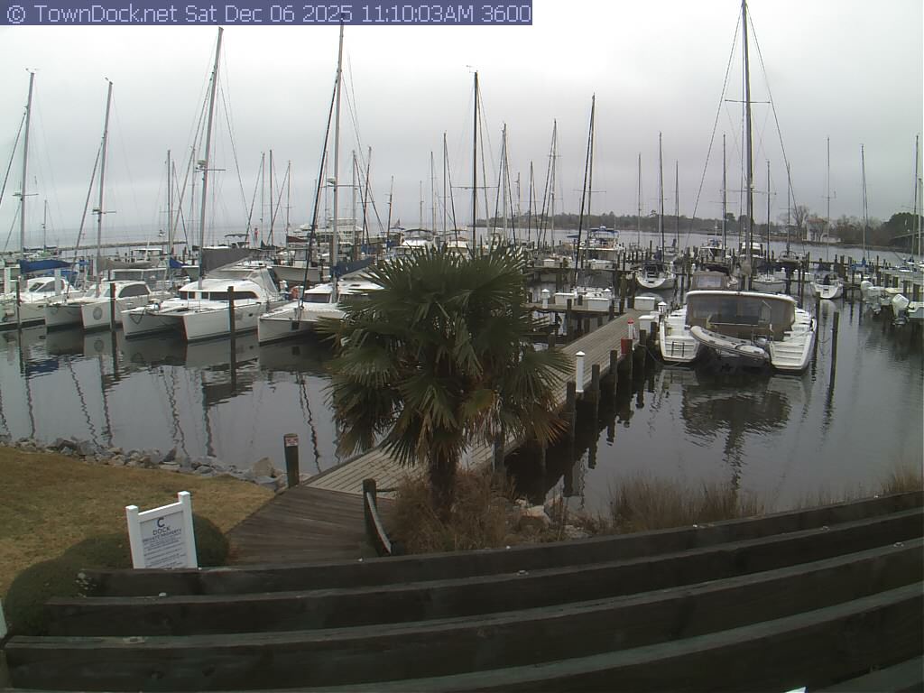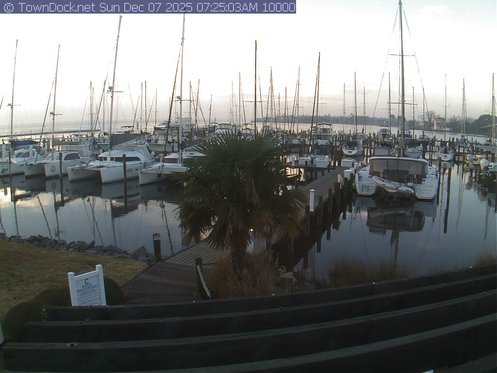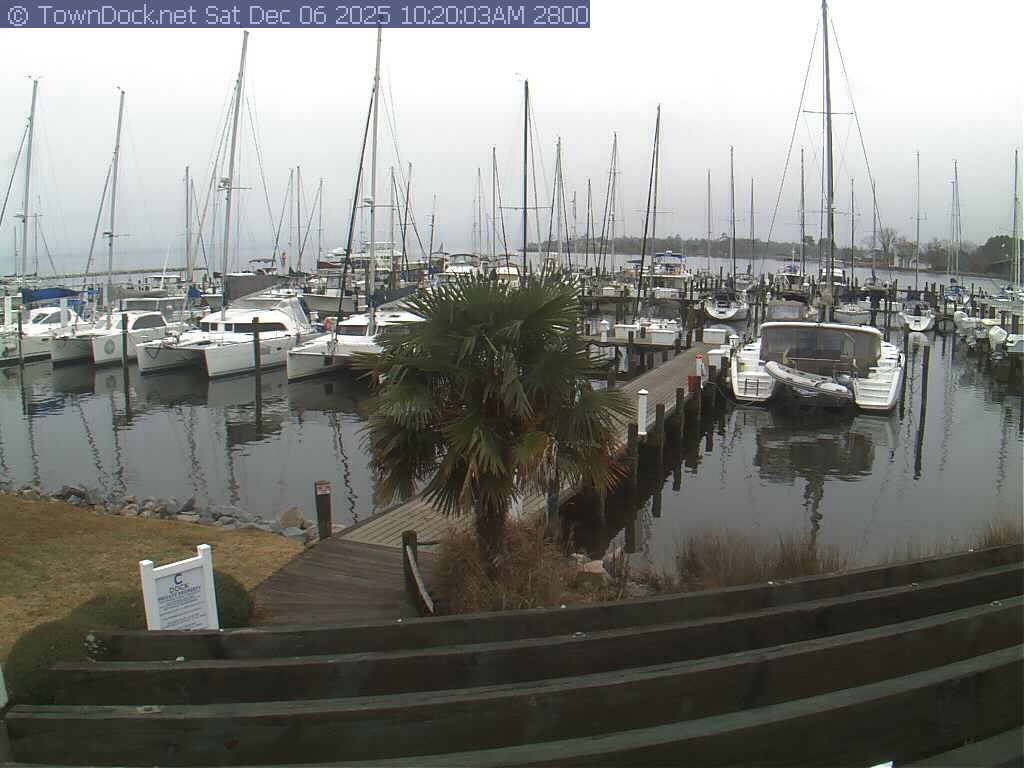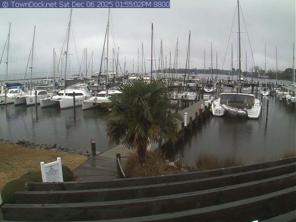 shows Oriental Harbor Village Marina, with the Oriental anchorage & Neuse River in the background. OHVM Cam takes a new picture every five minutes from dawn til just before dusk. Click on the image to see a larger version. Once you see that larger version, you can click (see arrow at right) to go back in time and see recent photos. Harbor Cam currently takes photos from 6:00am to 5:20pm.