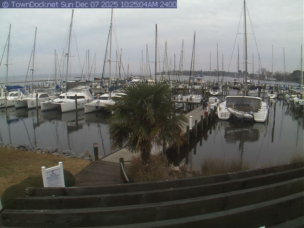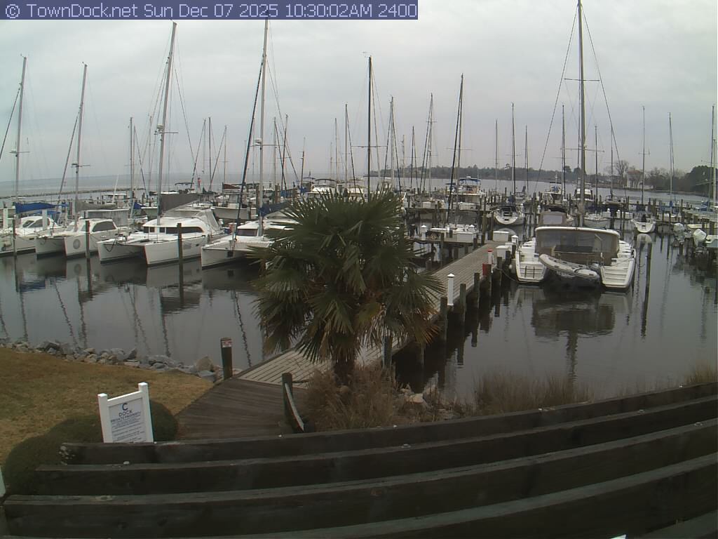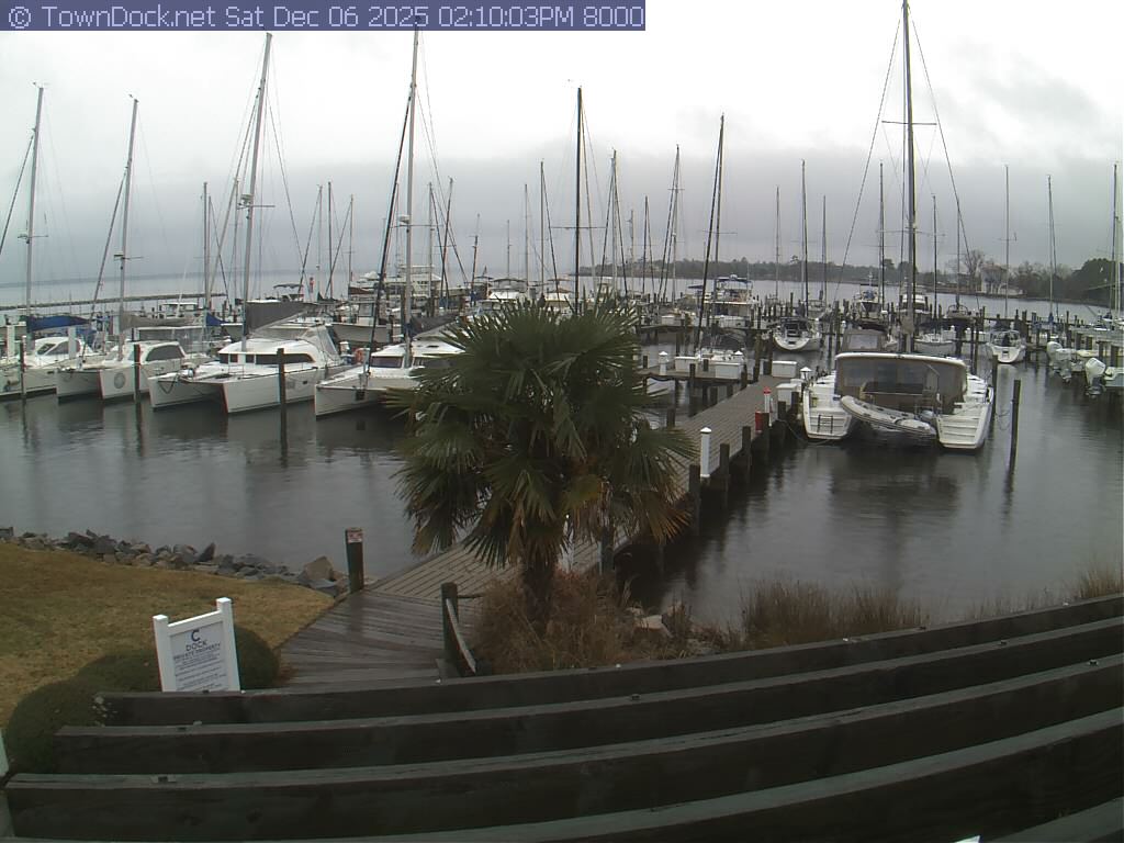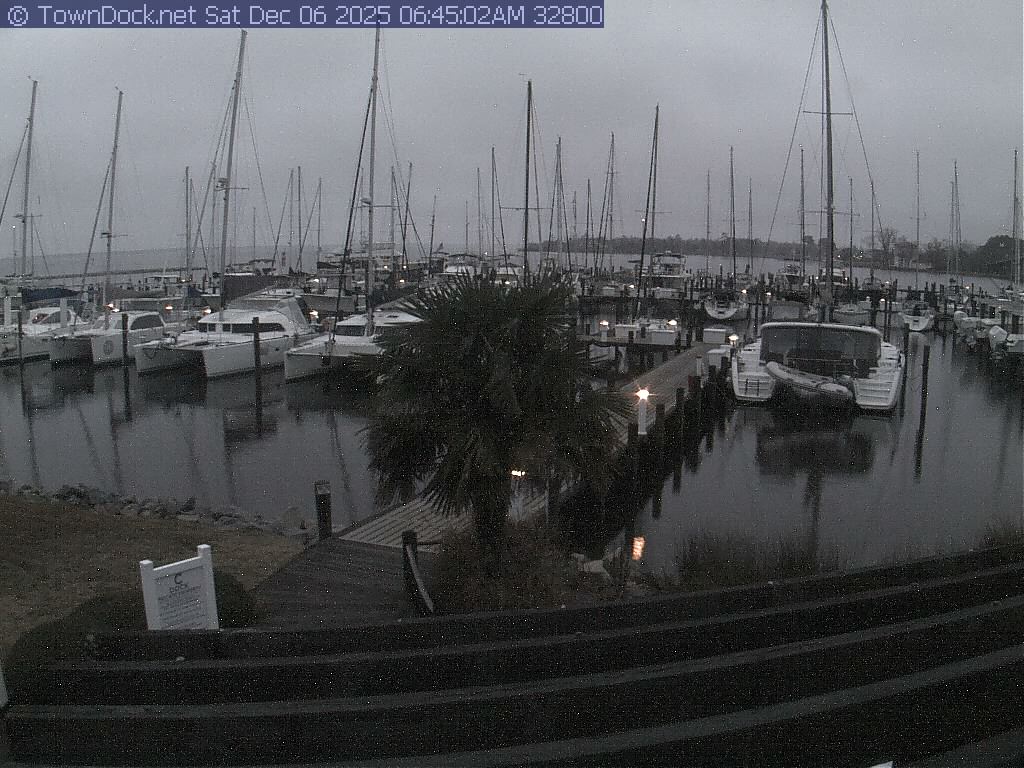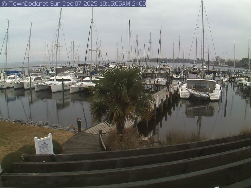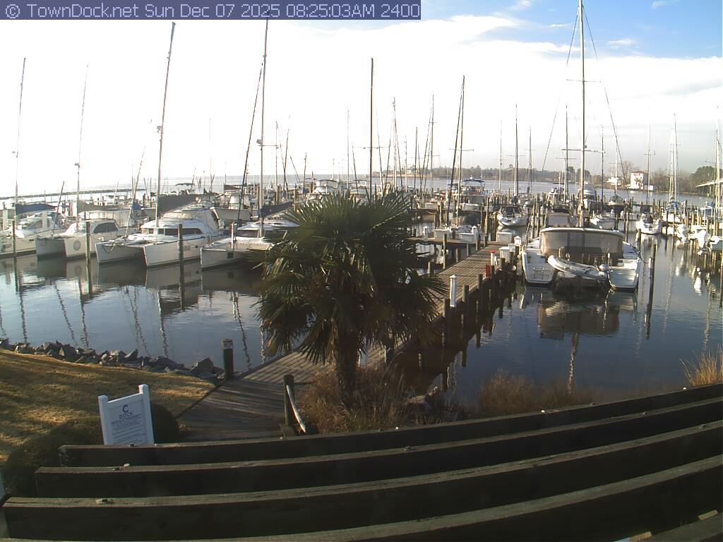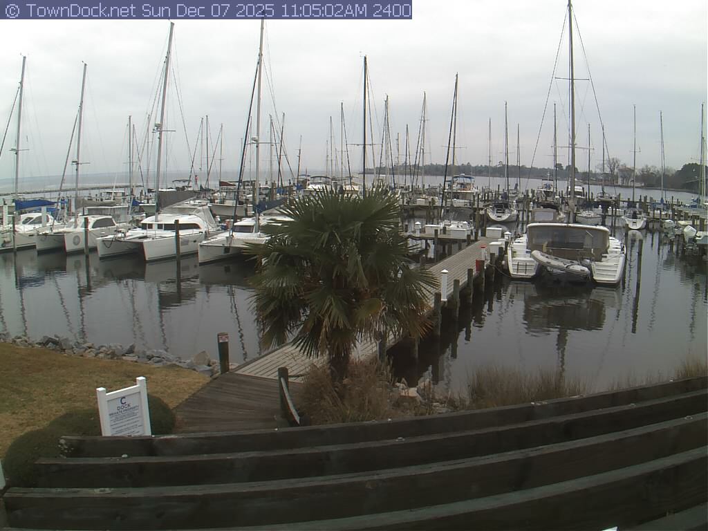 shows Oriental Harbor Village Marina, with the Oriental anchorage & Neuse River in the background. OHVM Cam takes a new picture every five minutes from dawn til just before dusk. Click on the image to see a larger version. Once you see that larger version, you can click (see arrow at right) to go back in time and see recent photos. Harbor Cam currently takes photos from 6:00am to 5:20pm.