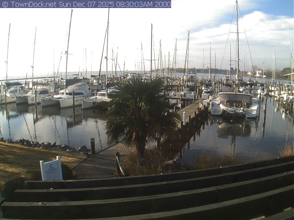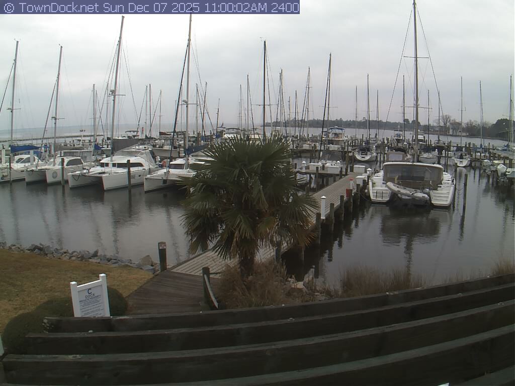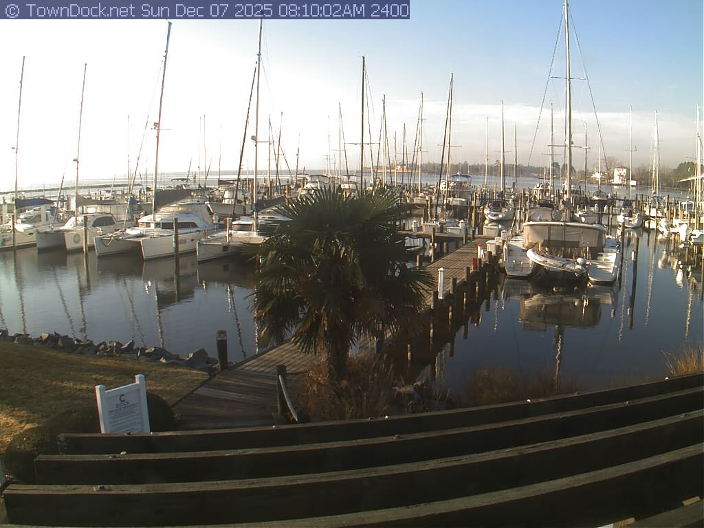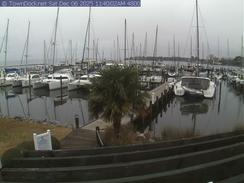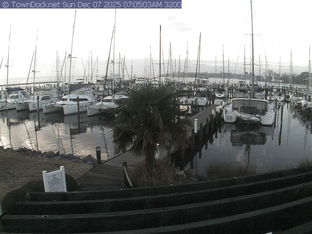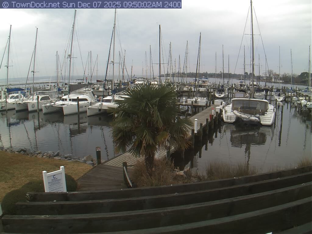 shows Oriental Harbor Village Marina, with the Oriental anchorage & Neuse River in the background. OHVM Cam takes a new picture every five minutes from dawn til just before dusk. Click on the image to see a larger version. Once you see that larger version, you can click (see arrow at right) to go back in time and see recent photos. Harbor Cam currently takes photos from 6:00am to 5:20pm.
