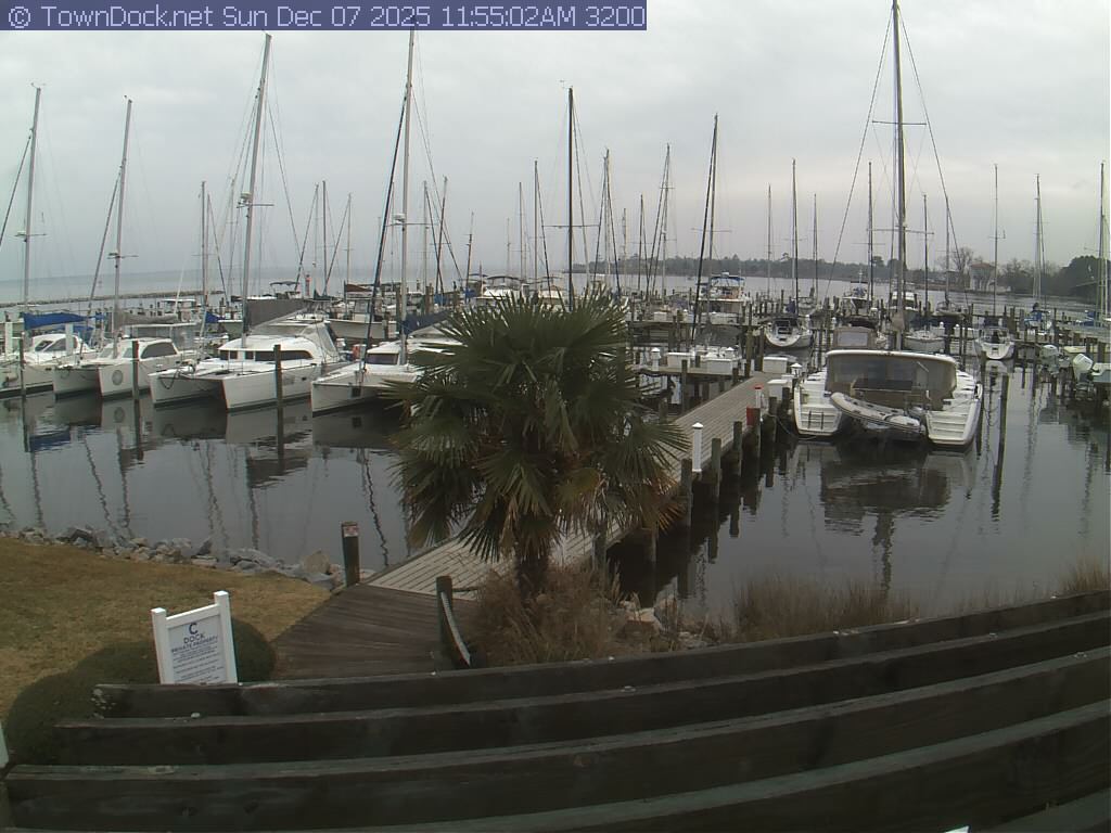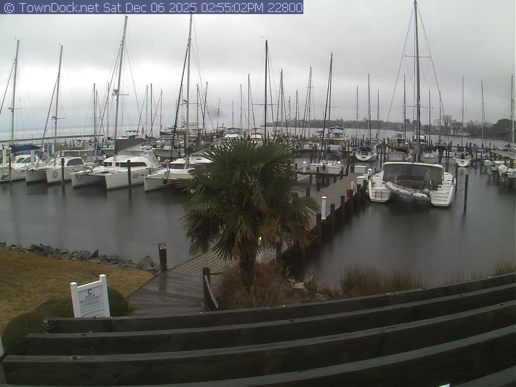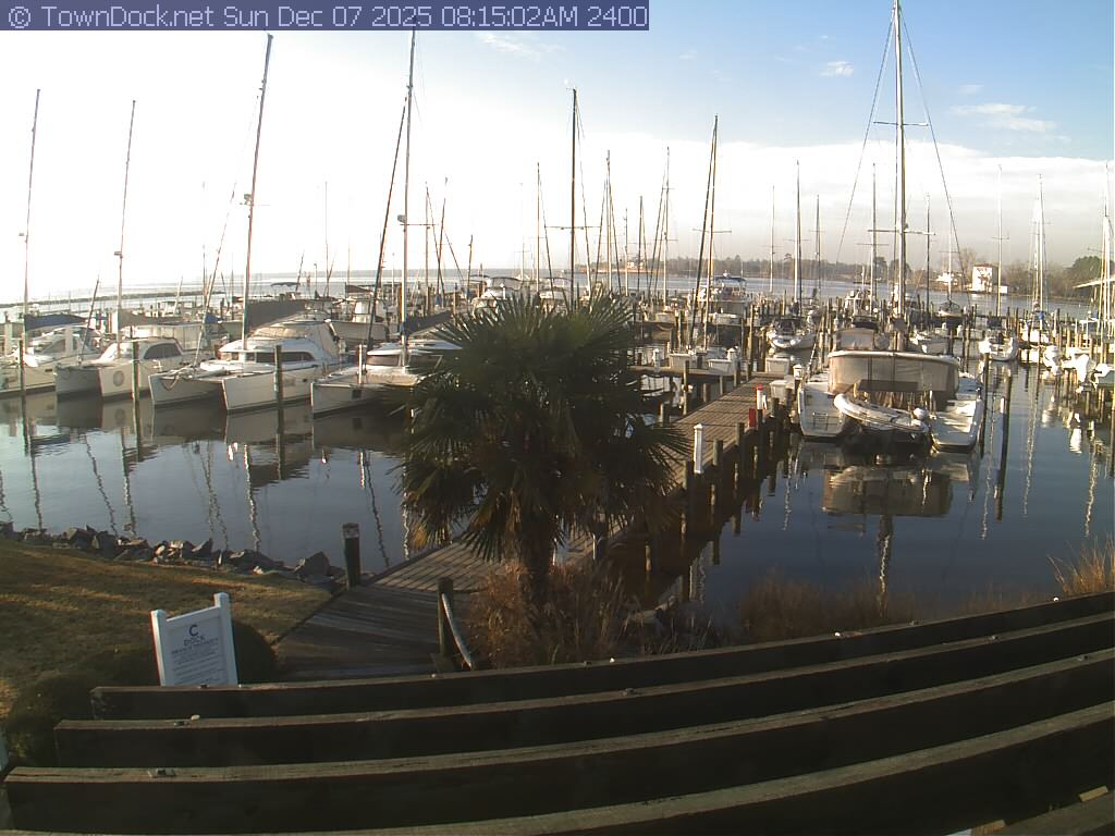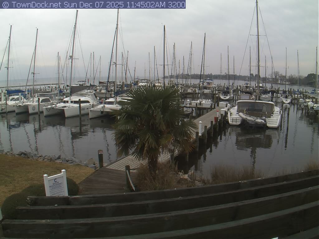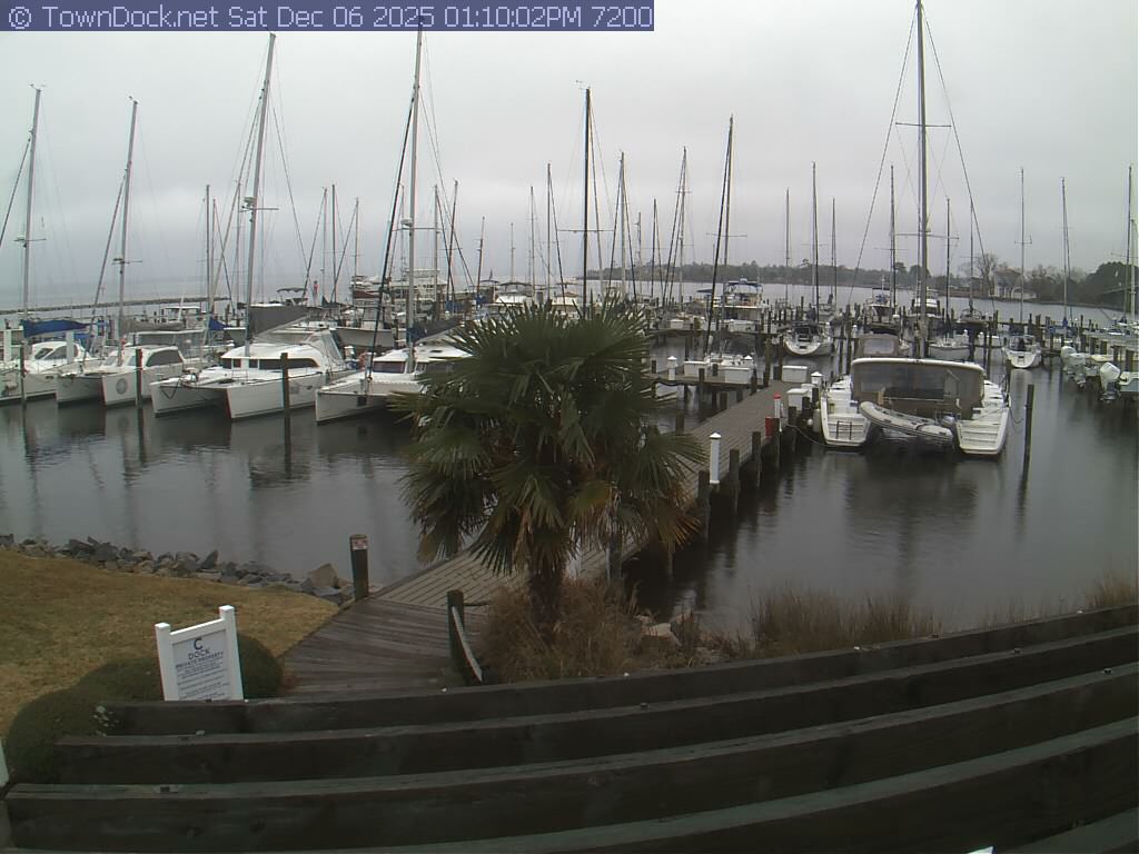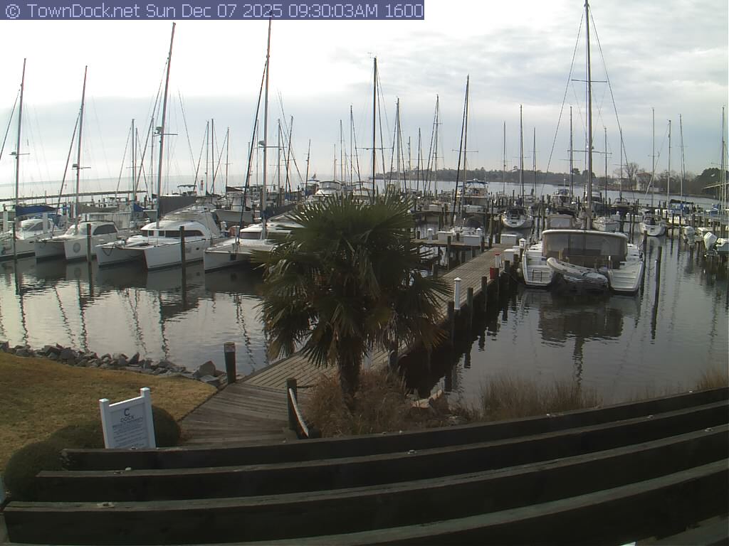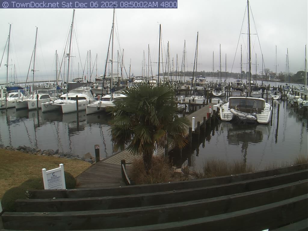 shows Oriental Harbor Village Marina, with the Oriental anchorage & Neuse River in the background. OHVM Cam takes a new picture every five minutes from dawn til just before dusk. Click on the image to see a larger version. Once you see that larger version, you can click (see arrow at right) to go back in time and see recent photos. Harbor Cam currently takes photos from 6:00am to 5:20pm.