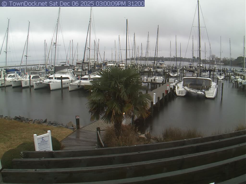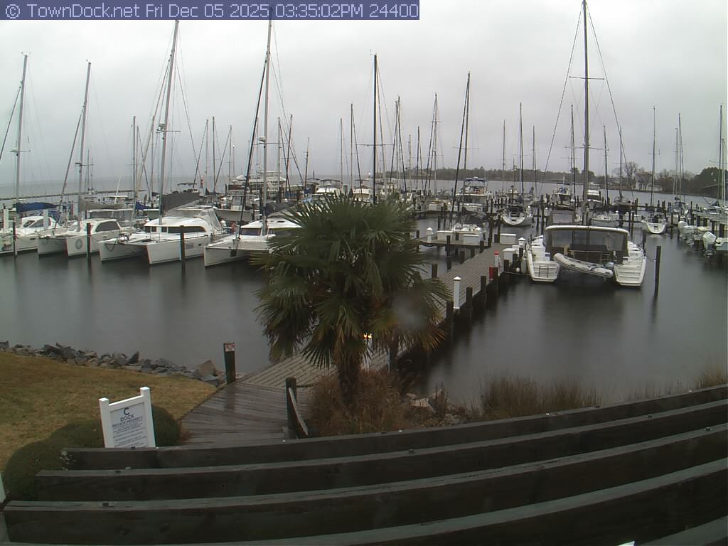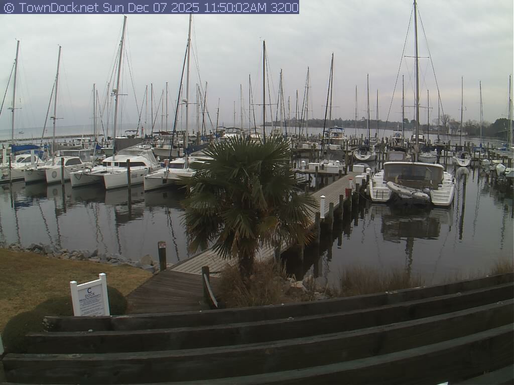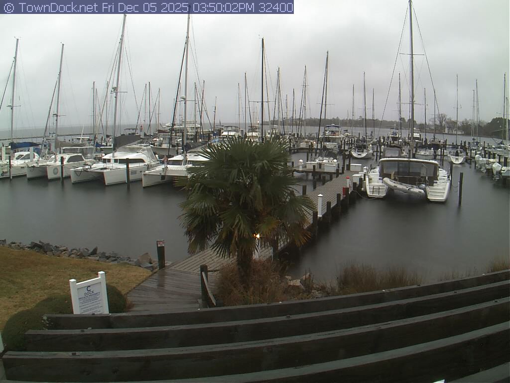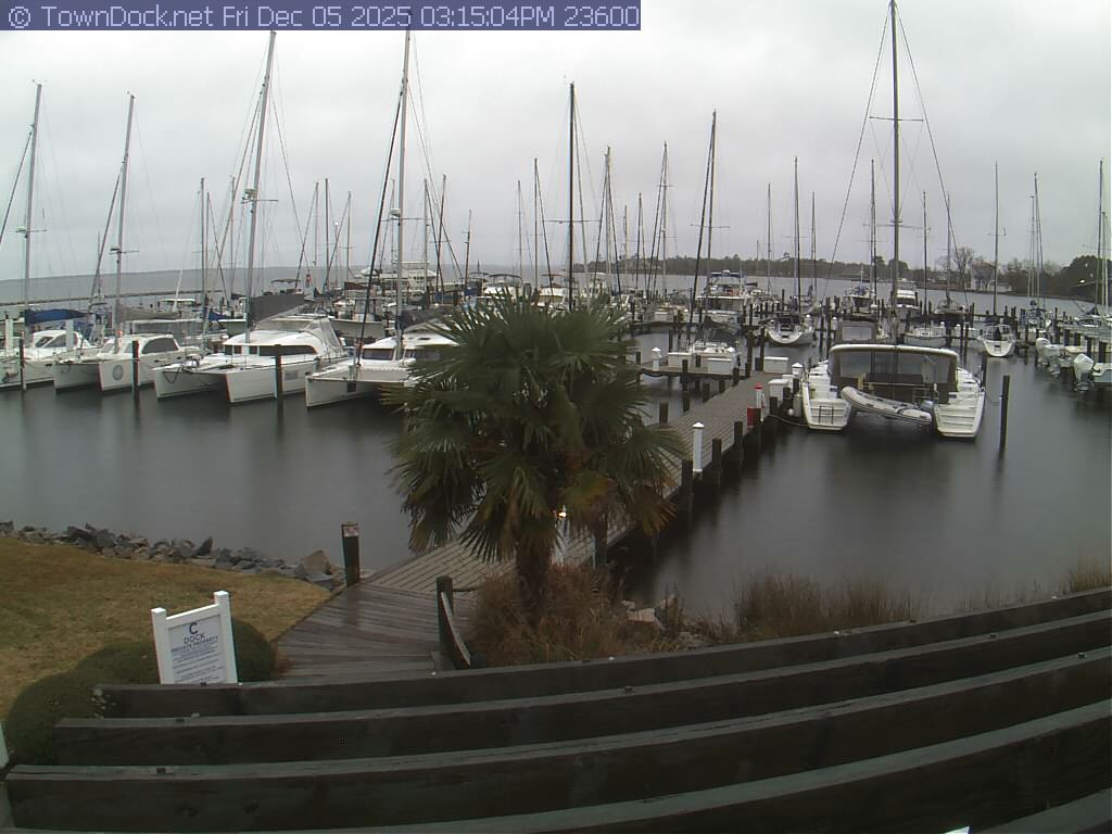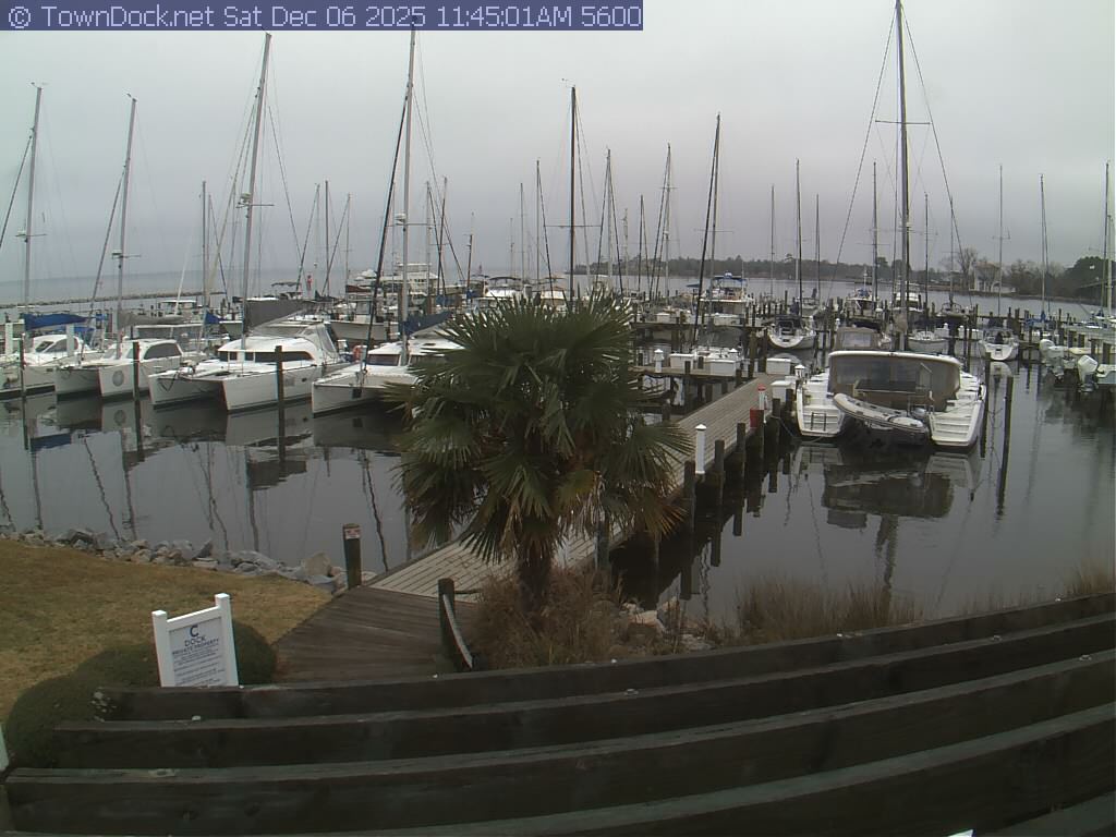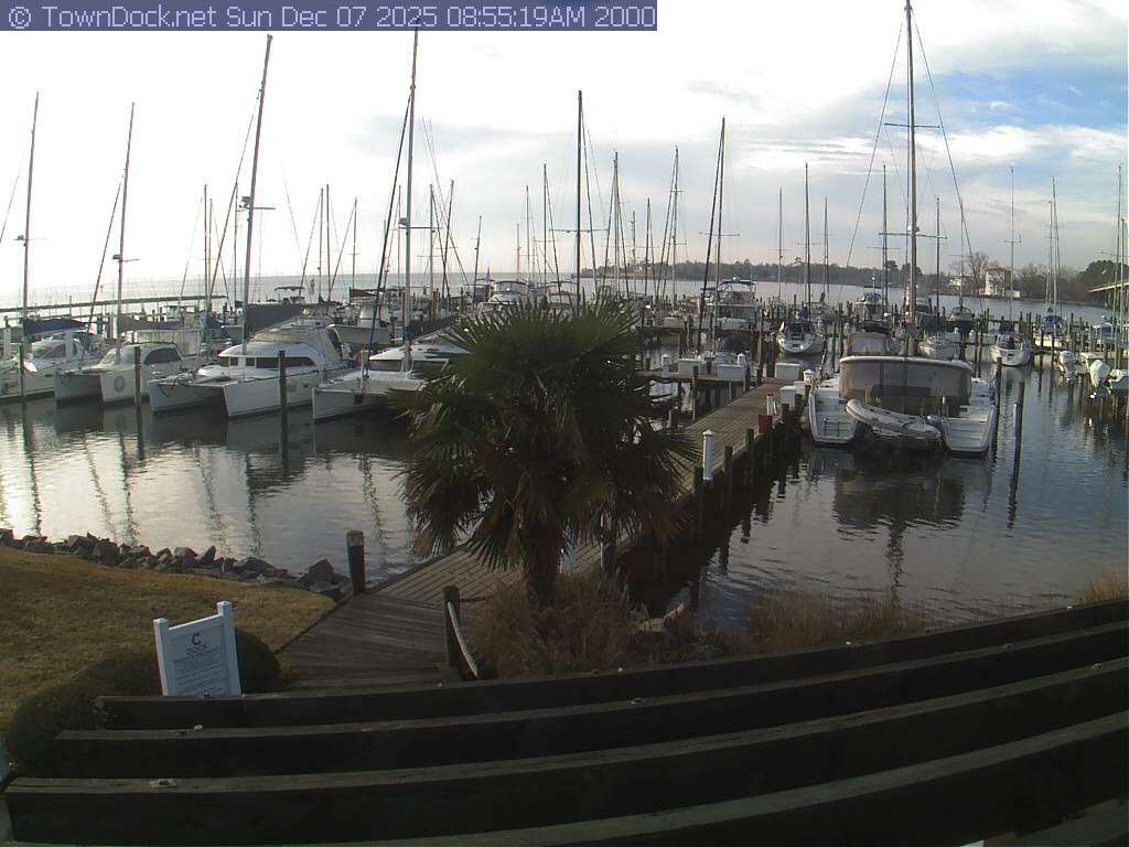 shows Oriental Harbor Village Marina, with the Oriental anchorage & Neuse River in the background. OHVM Cam takes a new picture every five minutes from dawn til just before dusk. Click on the image to see a larger version. Once you see that larger version, you can click (see arrow at right) to go back in time and see recent photos. Harbor Cam currently takes photos from 6:00am to 5:20pm.