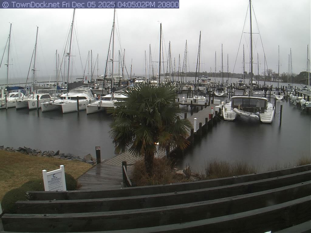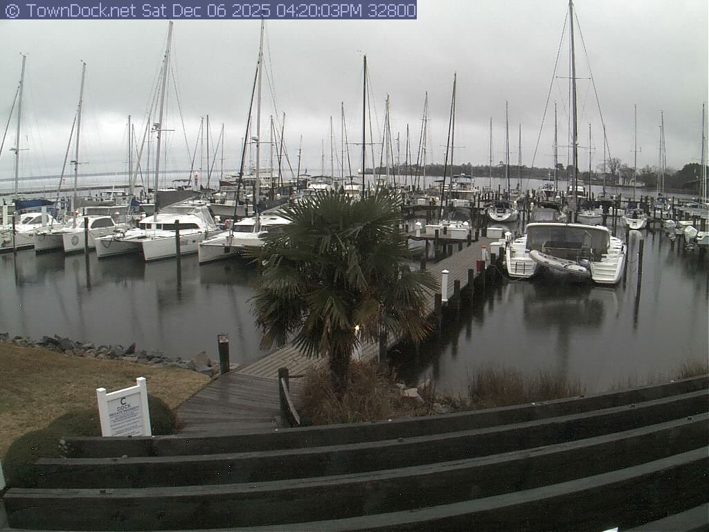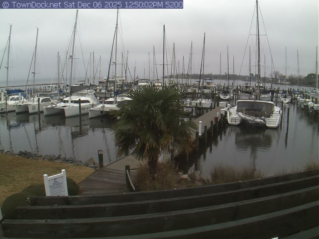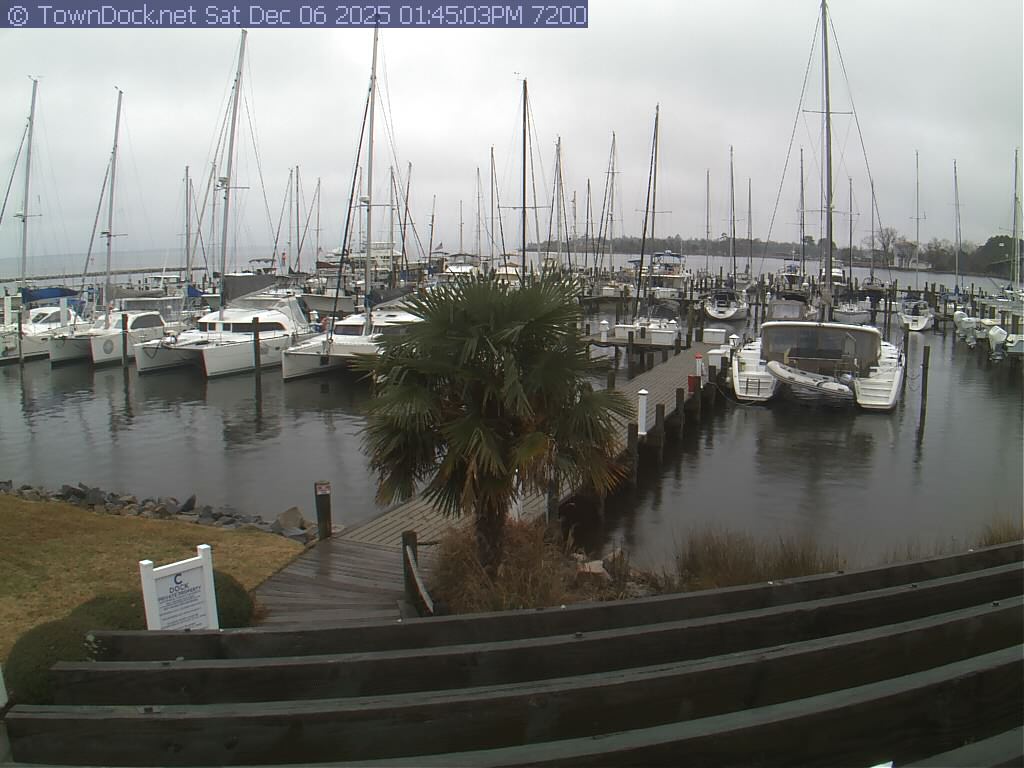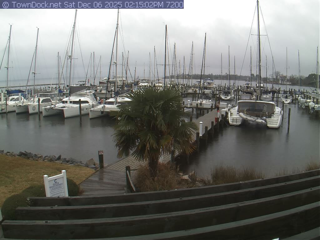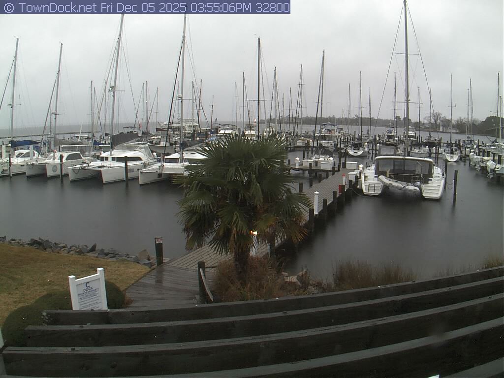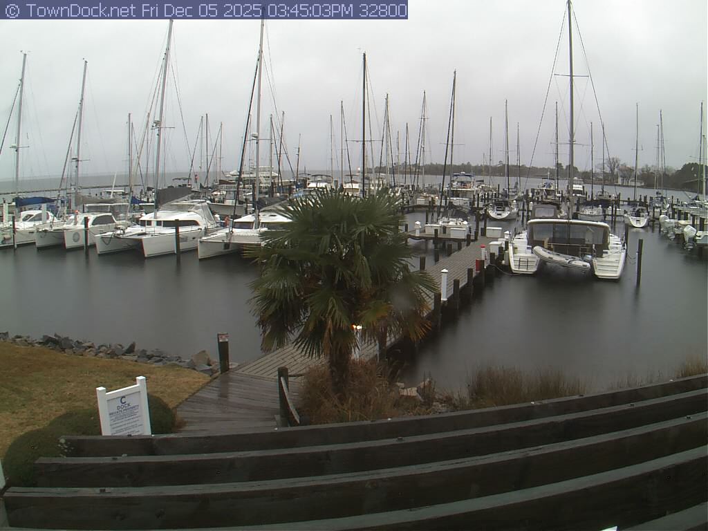 shows Oriental Harbor Village Marina, with the Oriental anchorage & Neuse River in the background. OHVM Cam takes a new picture every five minutes from dawn til just before dusk. Click on the image to see a larger version. Once you see that larger version, you can click (see arrow at right) to go back in time and see recent photos. Harbor Cam currently takes photos from 6:00am to 5:20pm.
