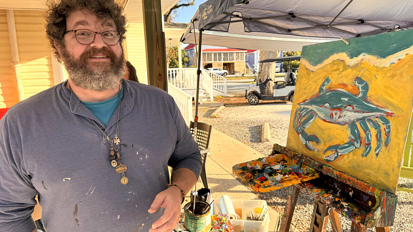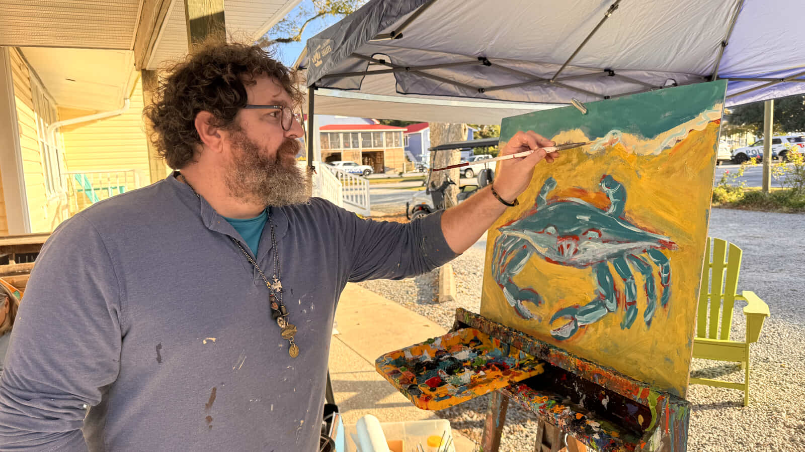 Artist Charlie Frye, caught this week leading paint class at Nautical Wheelers. Charlie was teaching the fine art of crab painting… while Wheelers mixed in wine. (click pic for more painting views)
