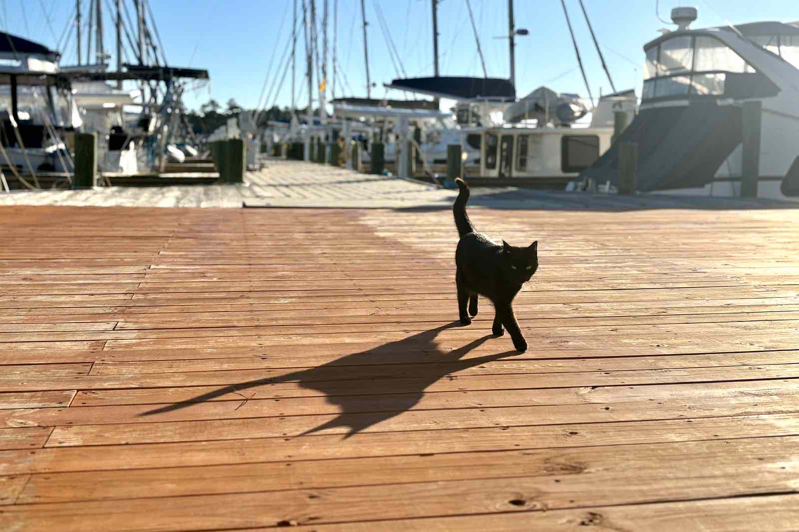 Nestled in Whortonsville nine miles outside of Oriental on the shores of Broad Creek, sits a refuge for cats. Marine Craft Marina and Boatworks, in Merritt, NC is a haven for an international brand of luxury catamaran, and for a Bombay breed of feline that calls the marina flagship home.