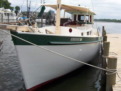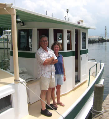 Carl and his wife Debbie, of Beaufort, SC stopped at the Town Dock in late June on board their 46-foot wooden (covered in glass) boat.
