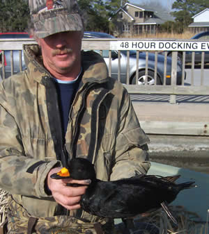 You’ve heard the expression – “a Dead Duck”. This is one….A hunting guide for 35 years, Bernie said that the Neuse River where they’d hunting on this day before New Years Eve was actually a better place to find sea ducks than places that were closer to the sea, such as the Core Sound where he had taken his four customers the day before.