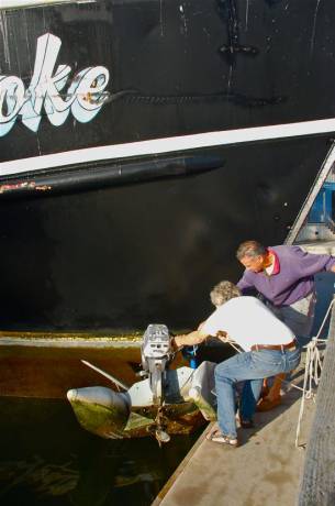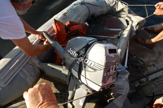 Dinghy retrieval team. Donn Erickson and Ben Oponick who, along with others, helped Neville Clement retrieve the punctured dinghy and save the dinghy’s motor from sinking.[page]