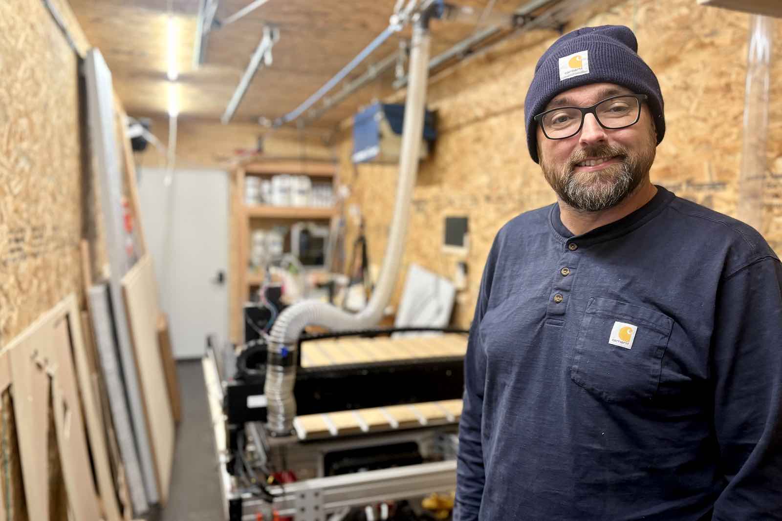 Mads operates out of a shipping container faced with cedar shingles. It has been insulated and temperature controlled to house a CNC machine, 3D printer, and of course a video editing and streaming suite. Built out and fitted by himself, with a trusty tripod and GoPro camera capturing it all.