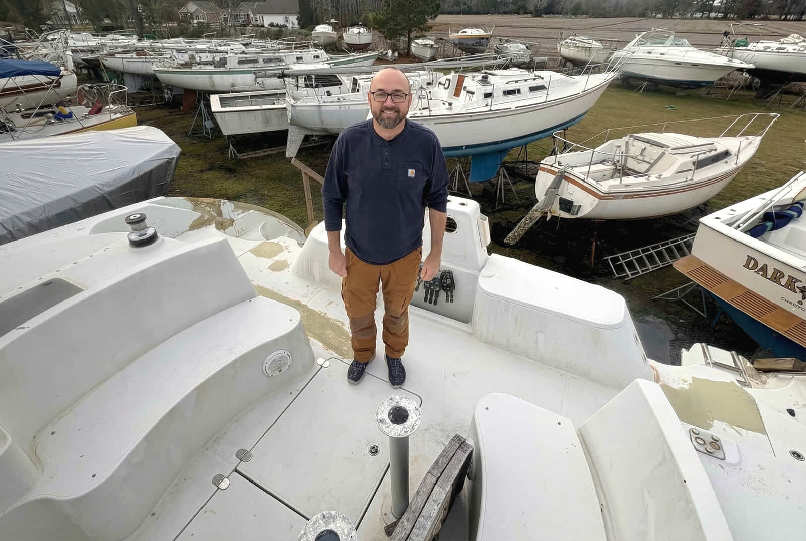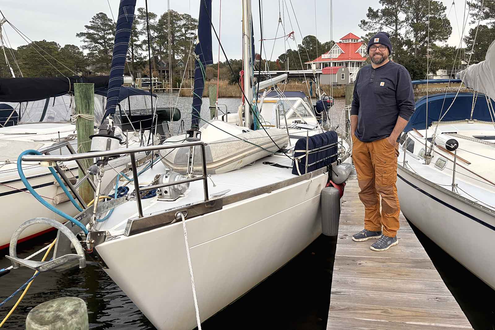 After acquiring the wrecked vessel in Florida, a quick road trip north was all it took to relocate the project to Oriental. They checked out the town and marine facilities, then had dinner at M&M’s in town.