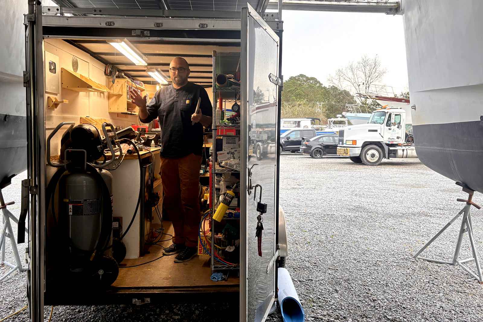 Mads Dahlke inside his converted workshop.From the shores of Denmark to Eastern North Carolina, Mads is no stranger to do-it-yourself work. Having built an entire brand on exactly that, “Sail Life” has nearly 160K subscribers on YouTube alone. Mads has formed a loyal audience over the last twelve years, earning him the job title of Influencer and an income to match.
