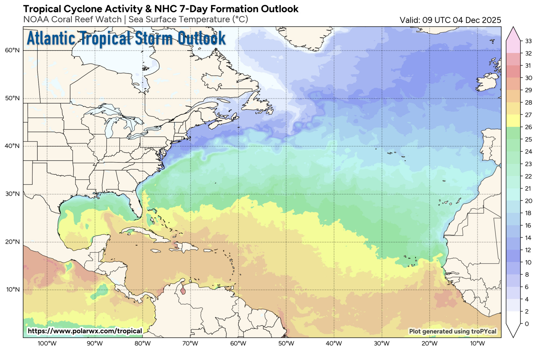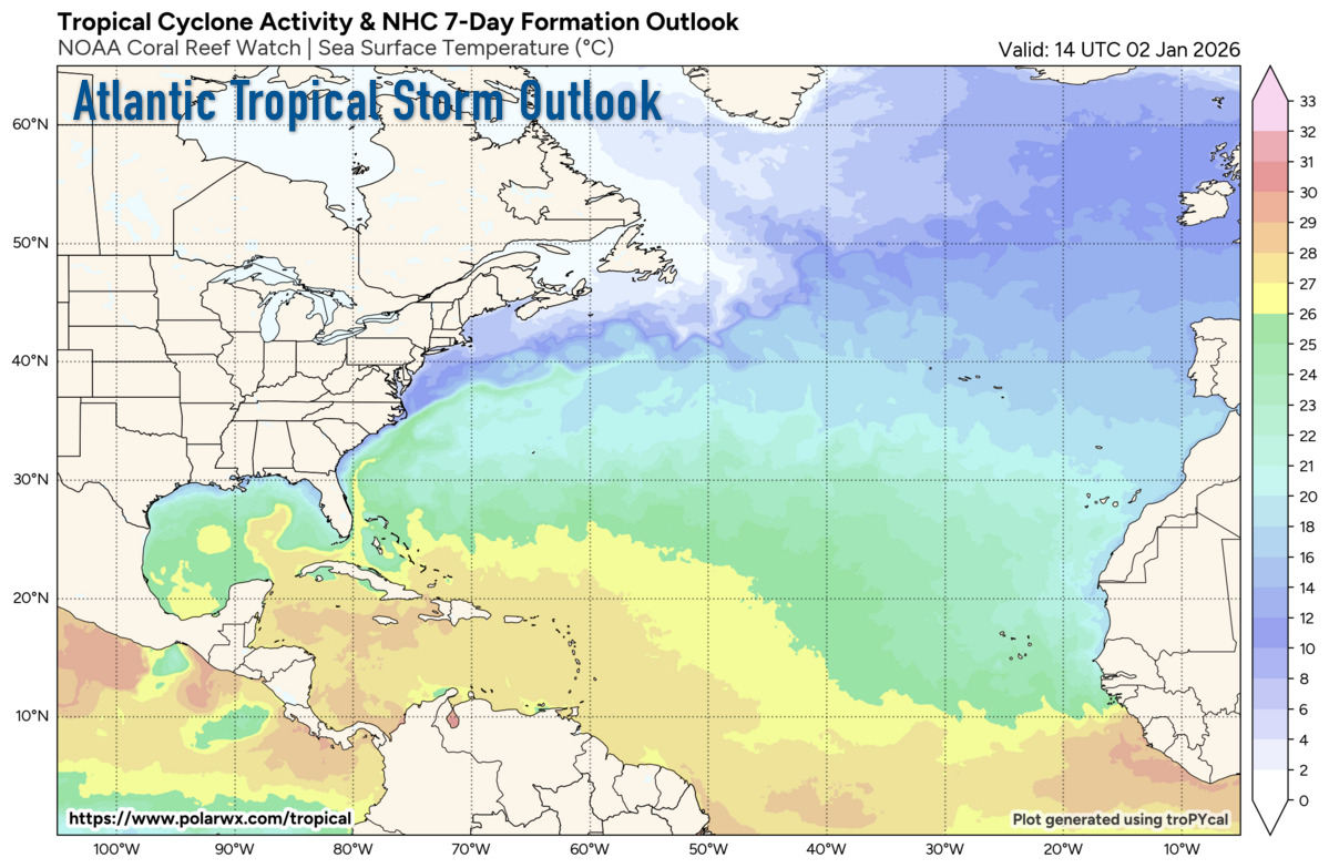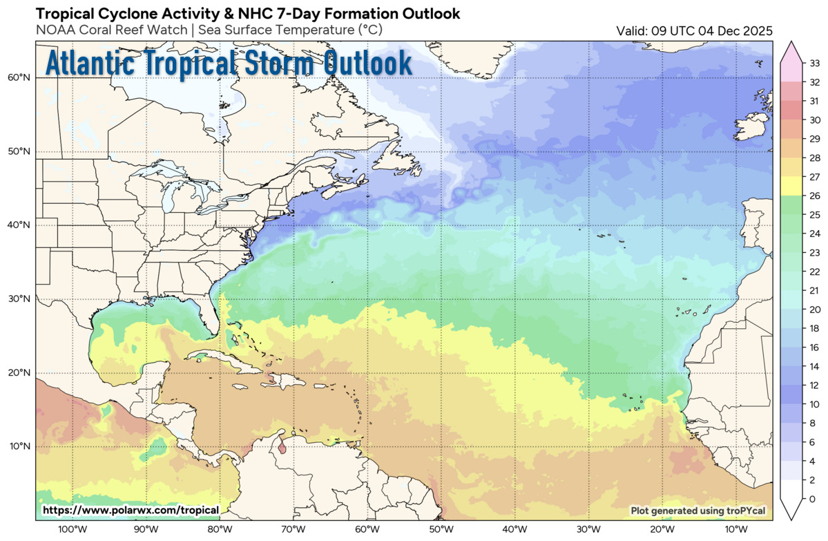 This is the last regularly scheduled Tropical Weather Outlook of the 2025 Atlantic Hurricane Season. Routine issuance of the Tropical Weather Outlook will resume on May 15, 2026. During the off-season, Special Tropical Weather Outlooks will be issued as conditions warrant.