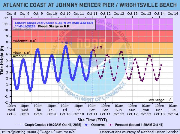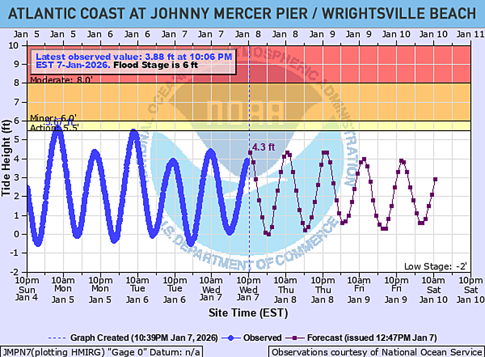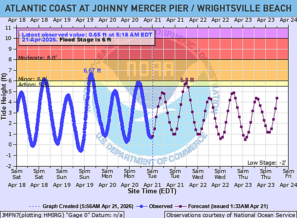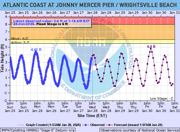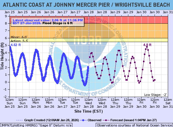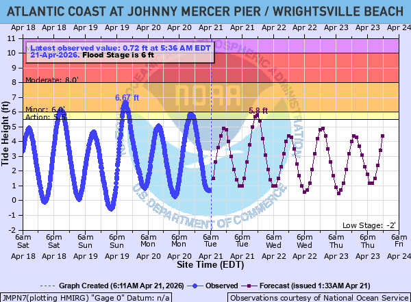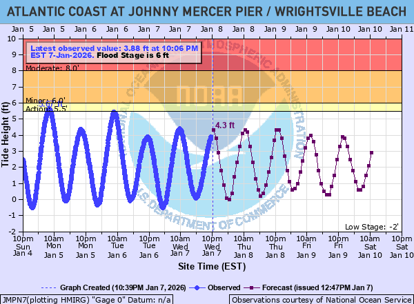 Atlantic Coast at Johnny Mercer Pier at Wrightsville Beach Water Levels