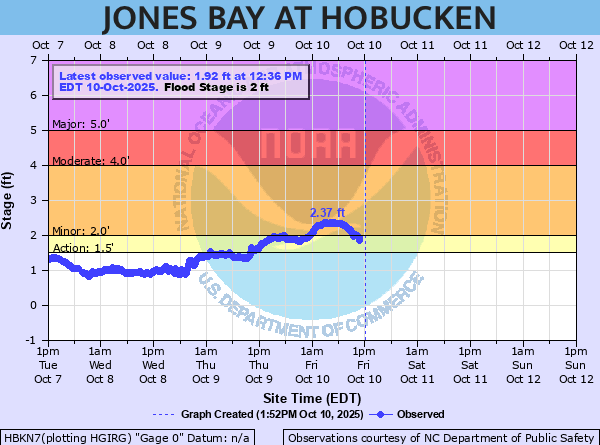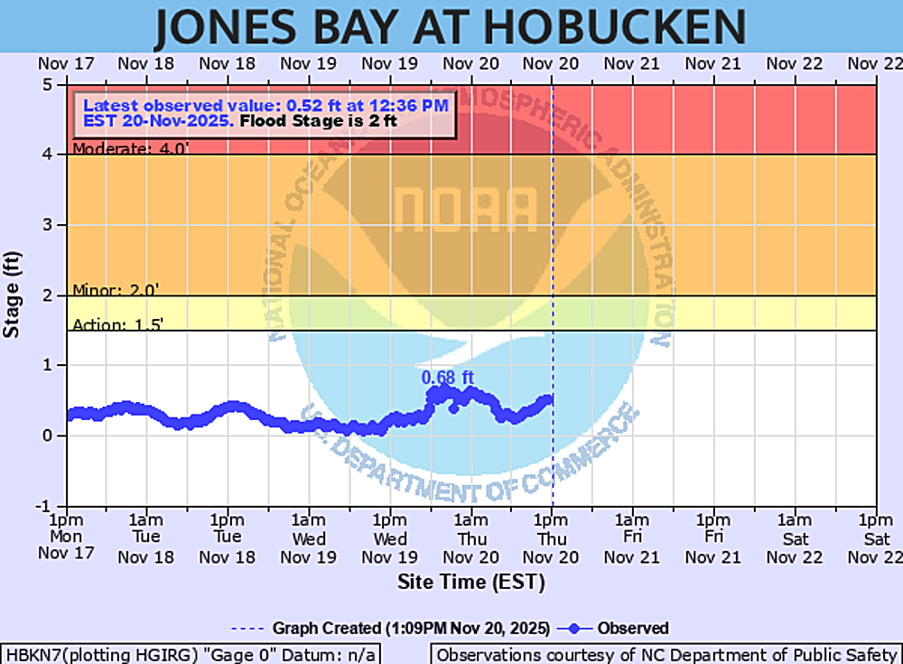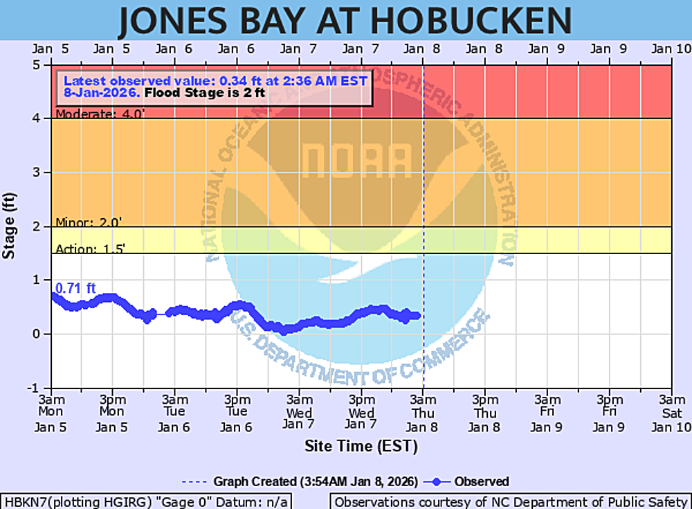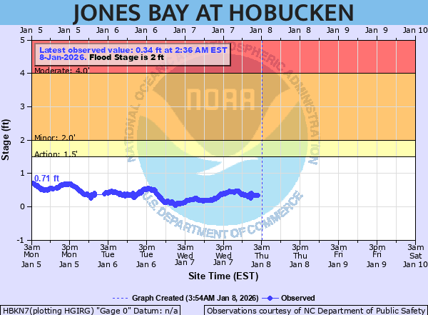 Jones Bay at Hobucken Water Levels